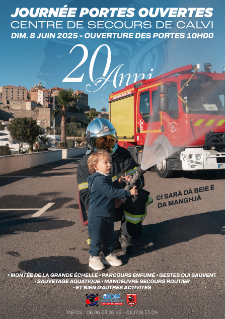 Dimanche 8 juin, les sapeurs-pompiers de Calvi célèbreront les 20 ans de leur caserne implantée au lieu-dit Guazzole. Pour l’occasion, une journée portes ouvertes est organisée à partir de 10h, avec de nombreuses animations à destination du public.