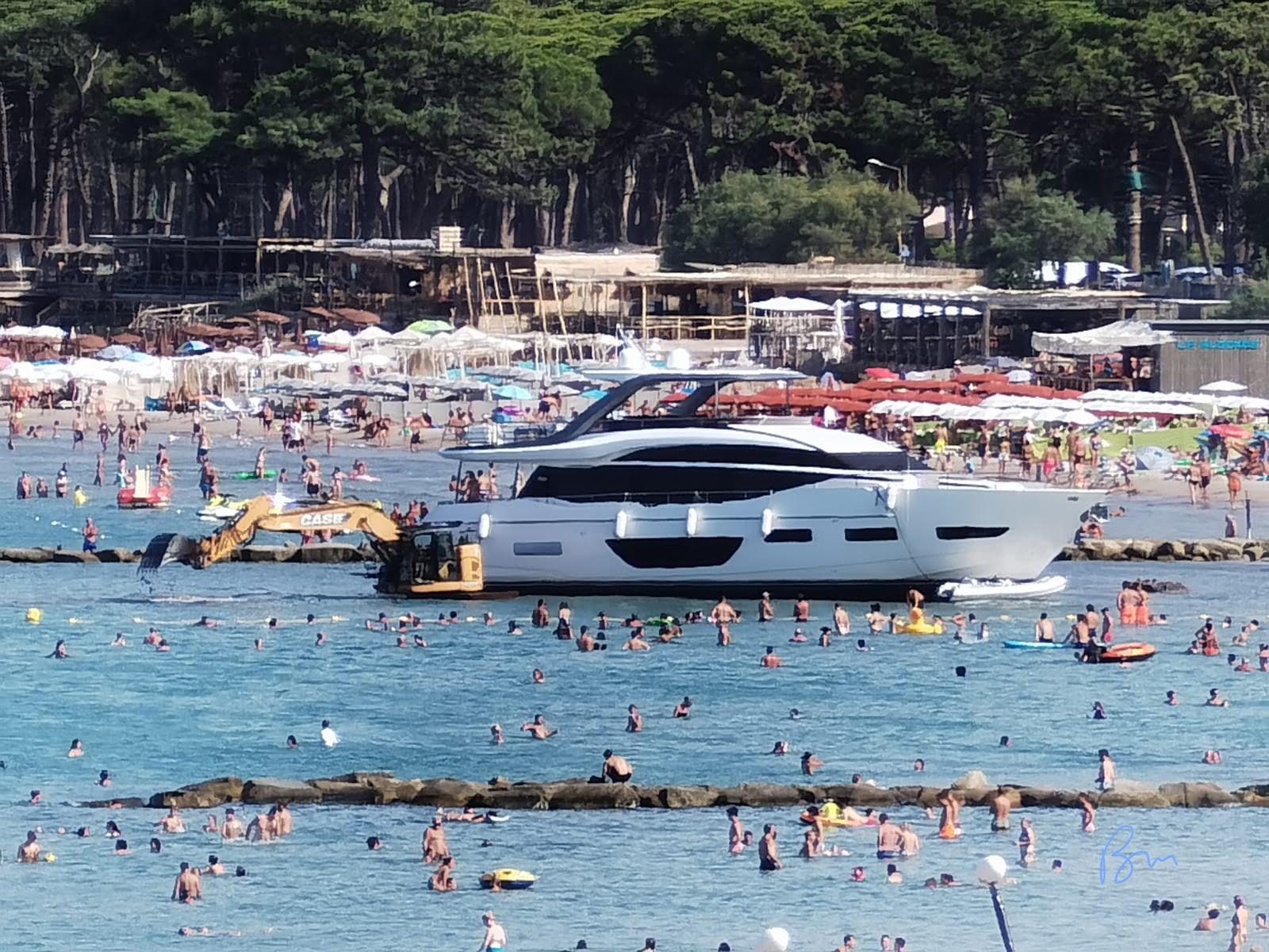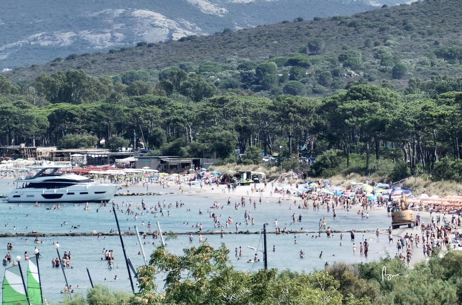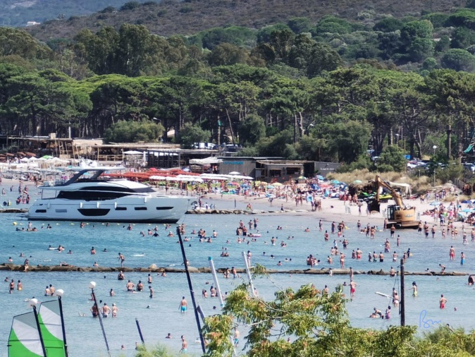 Après l'orage de la nuit (voir par ailleurs) la pinède et la plage de Calvi ont repris leur rythme estival. En cette journée du 15 août, il y avait, en effet foule, au bord de l'eau. Ce lundi pourtant les baigneurs, aussi nombreux qu'aux plus beaux jours, ont assisté à la tentative de désensablement du Yacht de 23 mètres échoué depuis le coup de tabac qui a affecté la Balagne il y a quelques jours. Une pelle mécanique dans l'eau ? Le mouvement d'étonnement passé, la foule des baigneurs n'a pas été perturbée plus que cela. Elle a poursuivi ses ébats dans l'eau; comme si elle ne voulait rien perdre de la dernière ligne droite avant la rentrée.