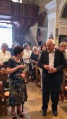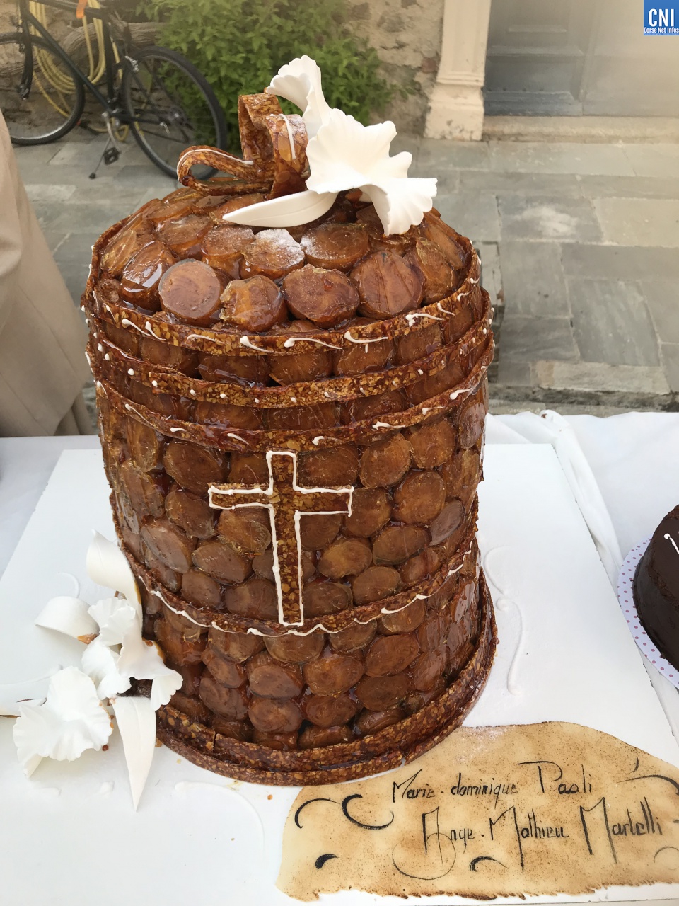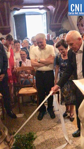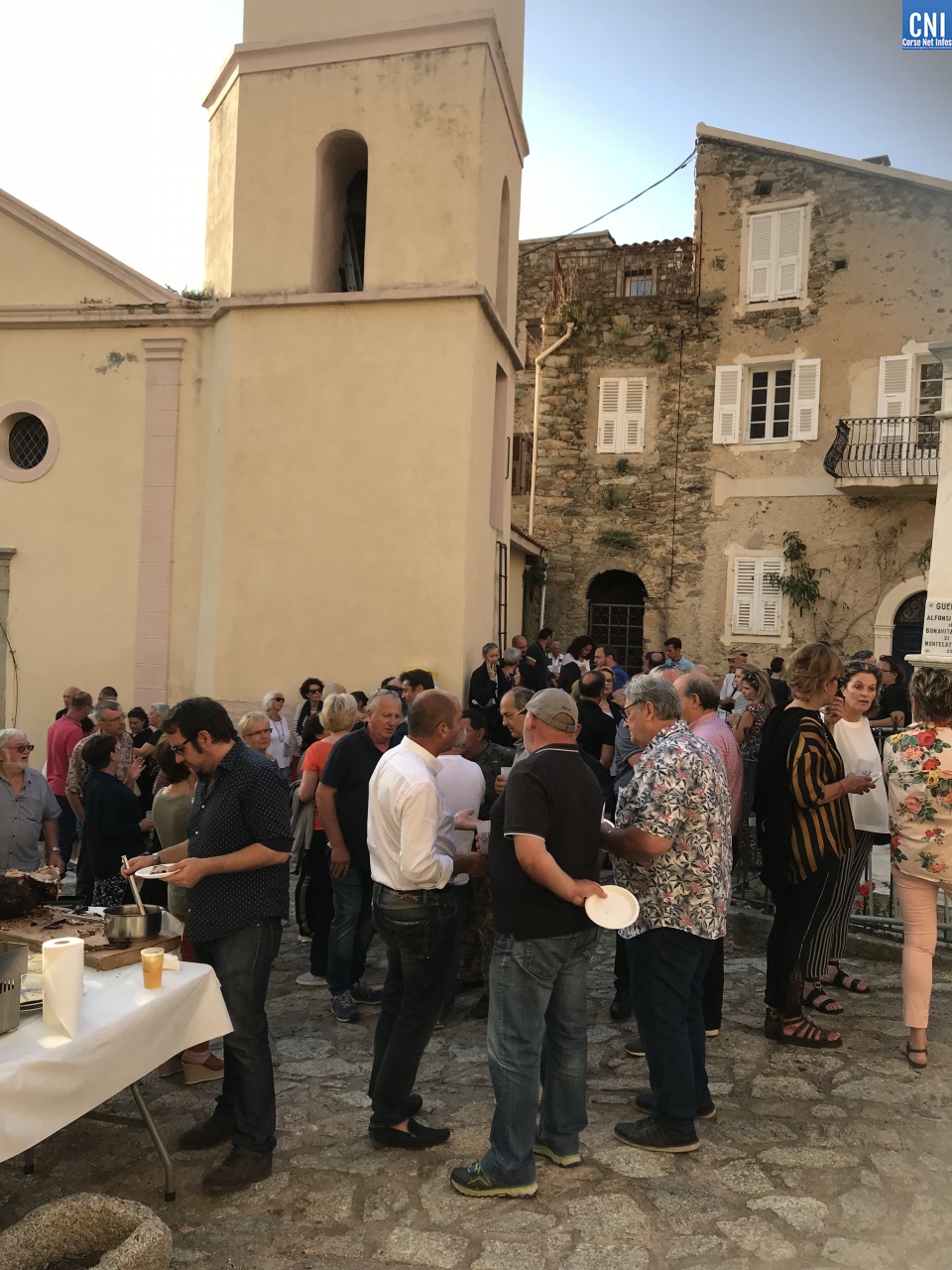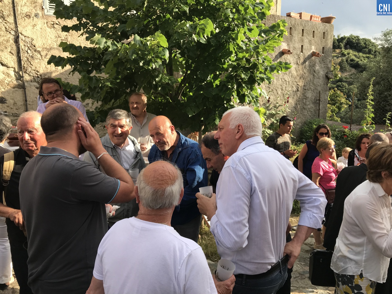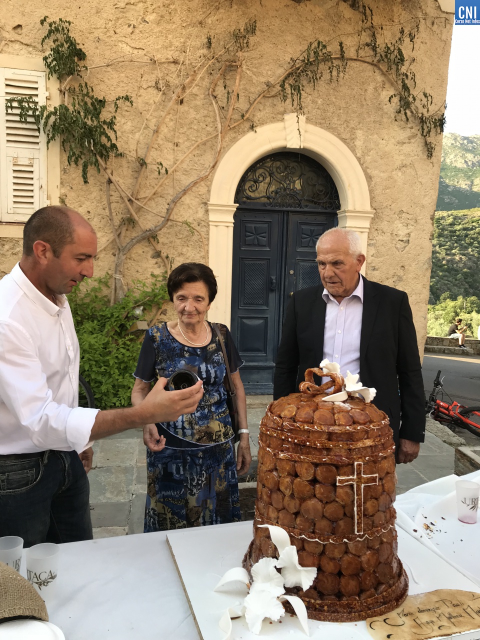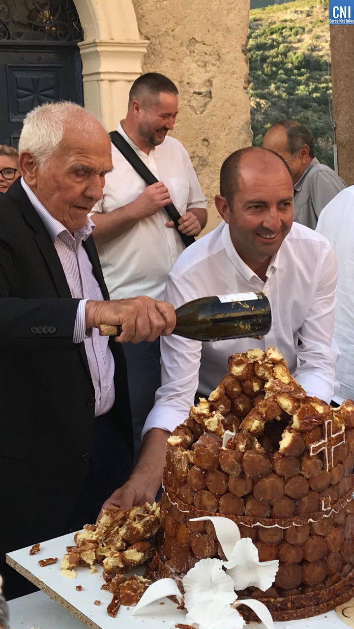 En présence également de nombreuses confrèries de Balagna et du Nebbiu, de Saveriu Luciani conseiller exécutif et de nombreux élus locaux, l'assemblée s'est en suite retrouvée sur la place de l'église, pour une grande réception où la pièce montée a été, comme il est en coutume lors d'un baptême, cassée à l'aide d'une bouteille de champagne par le parrain et la marraine.