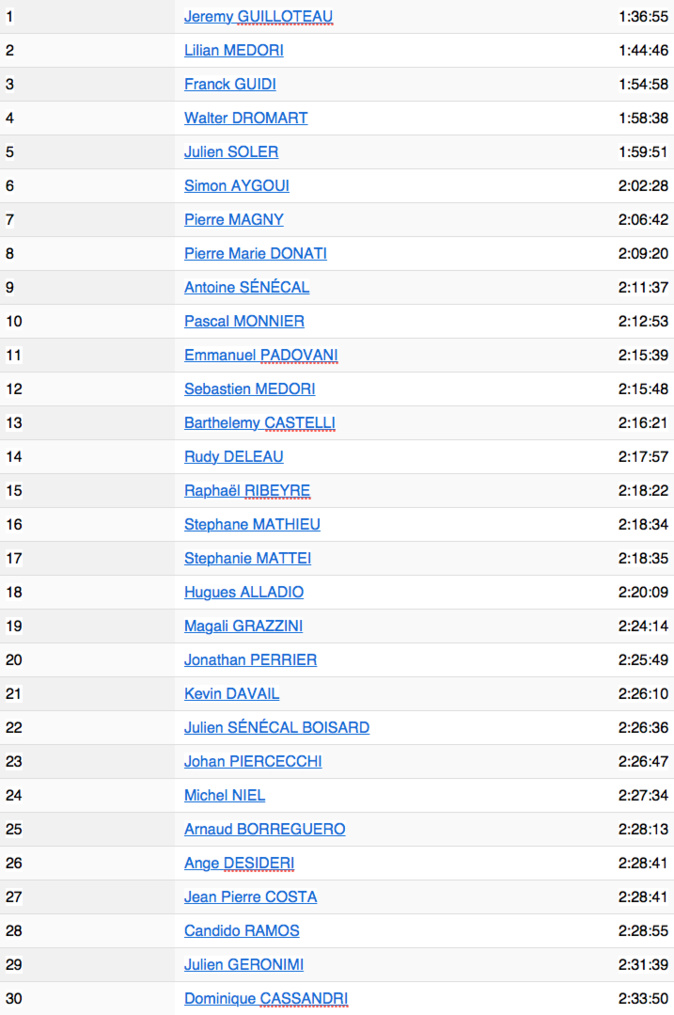 A noter également les belles performances de Pierre-Marie Donati, premier minime, Antoine Sénécal, premier espoir et Stéphanie Mattei, première féminine.