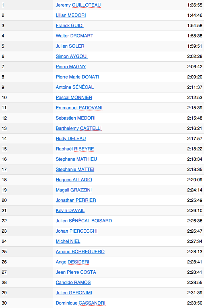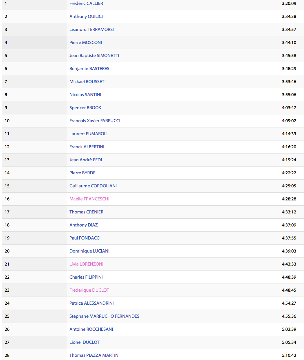 Précédé ou flanqué pendant bon moment par Anthony Quilici, peut-être pas au mieux de sa forme, il a su faire son effort au moment décisif pour distancer son principal adversaire du jour et l’emporter à Figarella avec plusieurs minutes d’avance sur Quilici et battre dans le même temps le record établi par Frank Biaggi, l’an dernier d’une poignée de secondes : 3h20’09 » contre 3h20’53 » !