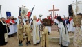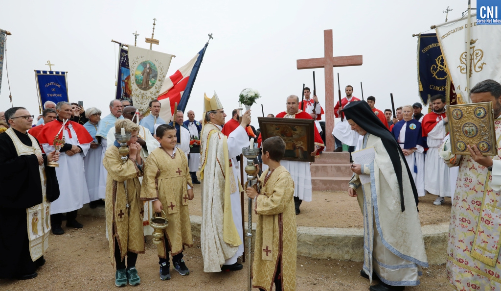 La procession a gagné le promontoire dominant la mer, et après un temps de prière devant la croix de Cargèse. L’évêque de Corse, a exposé la sainte icône de la colonie grecque aux quatre points cardinaux.