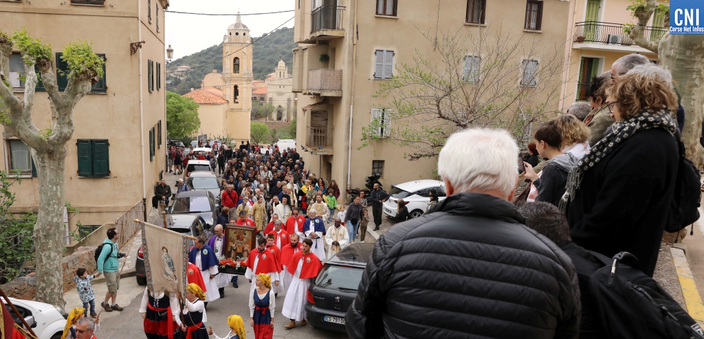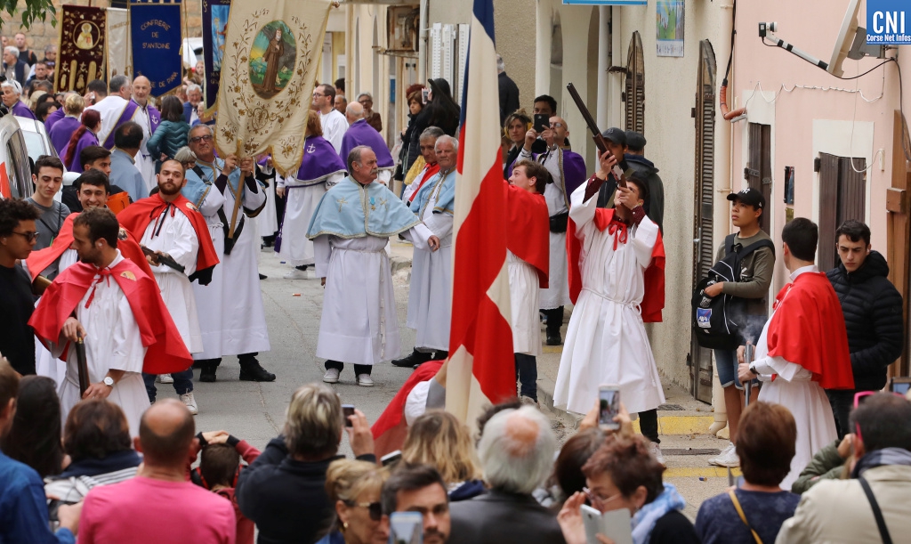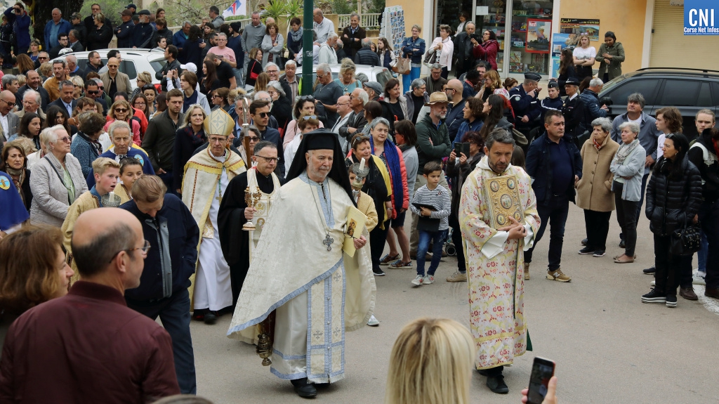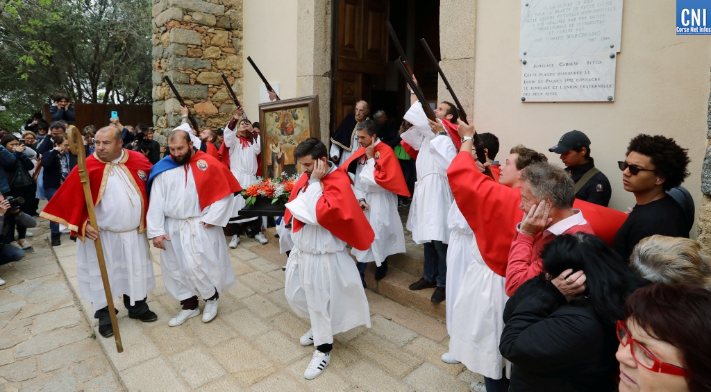 Ce lundi 22 avril, à l'issue de la messe en grec, dite par Mgr Armaos Athanase, Archimandrite de Cargèse arrivé quelques jours plus tôt d’Athènes, et présidée par l’évêque de Corse Monseigneur Olivier de Germay, les traditionnels tirs de fusils ont précédé la procession. Celle-ci a ensuite démarré sa marche, les huit confréries de toute la Corse en tête, arborant bannières et étendards : Saint Antoine Abbe de Piana, Saint Spiridion de Cargèse, San Ruchellu et San Erasmu d’Ajaccio, Père Albini de Vico, et trois autres de haute Corse dont Marignana.