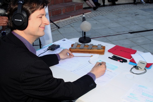 Malgré un vent plutôt frisquet, l'amphithéâtre du port de plaisance de Calvi était copieusement garni pour l'enregistrement de l'émission de France Inter le « Jeu des 1000€ » animée par Nicolas Stouffet et son complice Yann Pailleret.