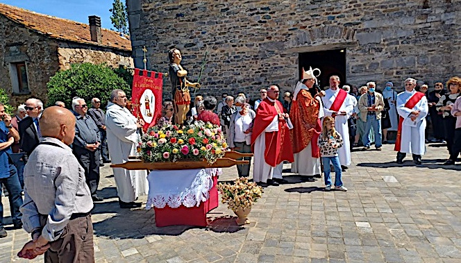 Une longue procession s'est ensuite déroulée dans le champ de foire avec la sortie du saint vénéré et ses reliques portées par des femmes pieds nus. La cérémonie religieuse s'est terminée sur le parvis de l'église où les paroissiens ainsi que Monseigneur ont entonné un vibrant Dio Vi Salve Régina.