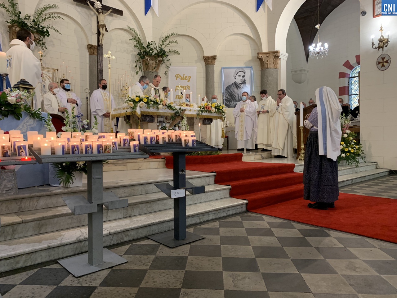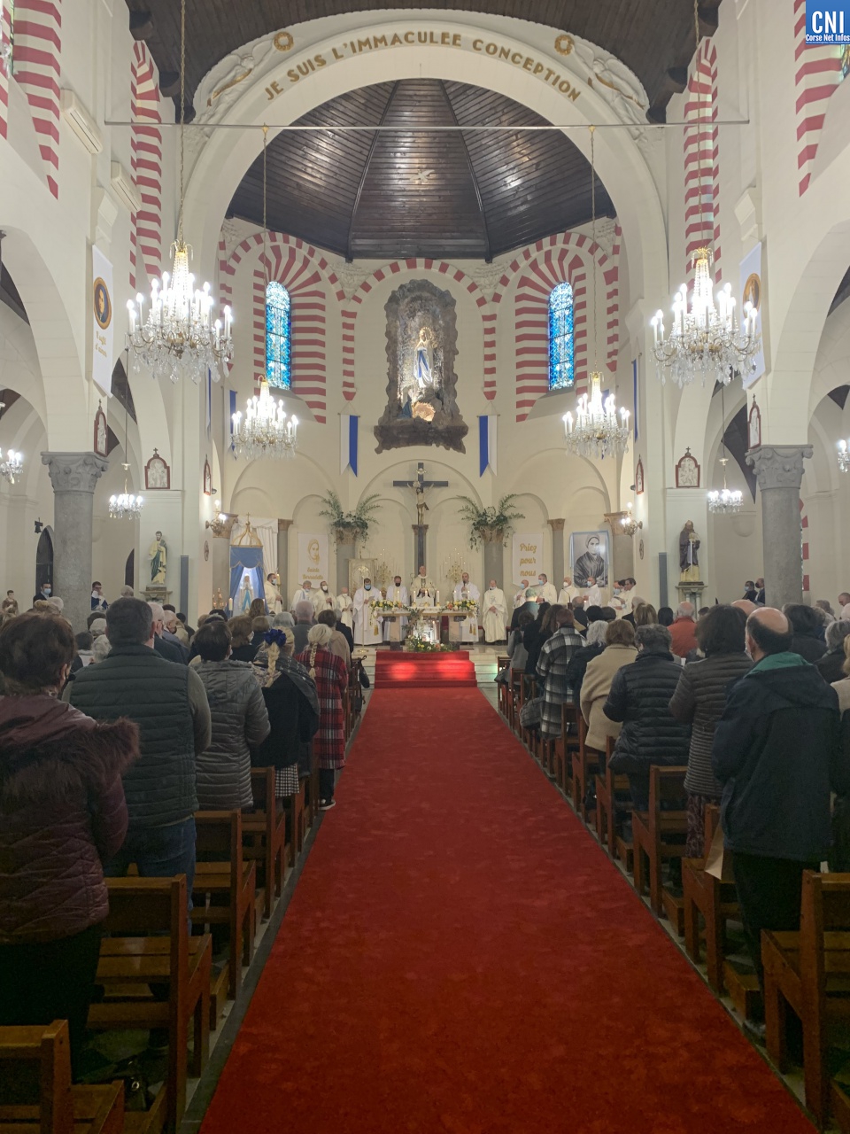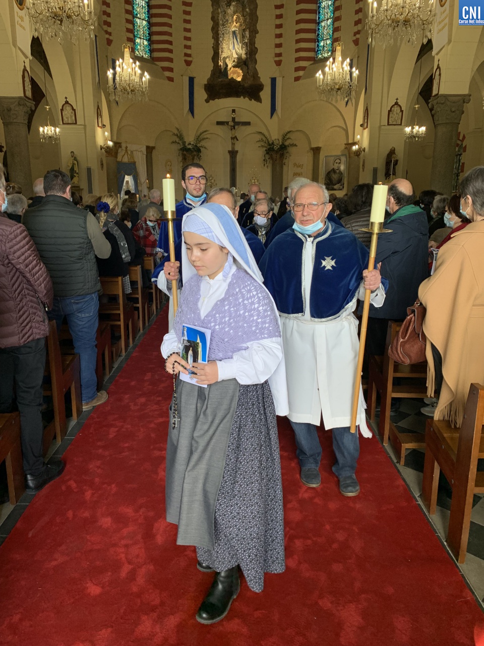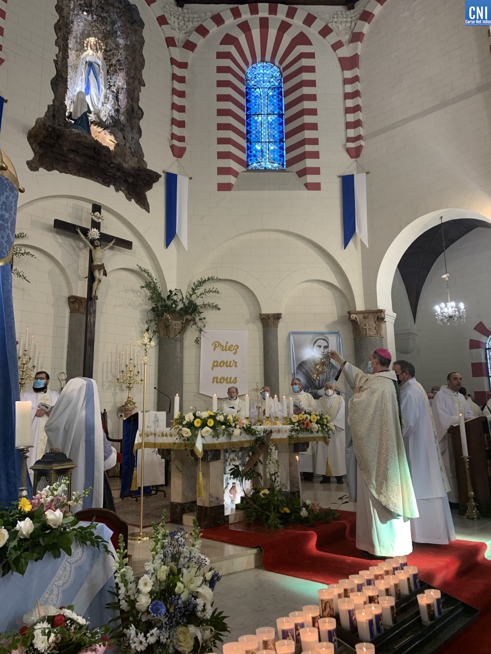 « C’est un moment important pour la vie de la paroisse, la vie du territoire, c’est un jour de mémoire » enchainait Mgr Bustillo. « Nous célébrons une vision, une apparition qui a changé la vie d’une jeune fille, Bernadette. C’est une belle fête, une fête émotionnelle. Lourdes séduit, Lourdes guérit cœur et âme. Il y a deux aspects dans cette fête : Marie nous invite à la conversion et à la confiance. On voit parfois dans la conversion une dimension triste, volontariste et c’est dur et compliqué alors que c’est un moment heureux qui tend vers le vivre meilleur. L’apparition de la Vierge est une présence discrète et efficace. Marie apparait pour apporter à l’humanité du courage. Elle nous dit – Je suis là et je vous accompagne. Sa présence maternelle doit nous rassurer. Marie est aussi la femme de la confiance. Une présence douce et fidèle qui nous rassurent. Elle est à Lourdes, elle est à Bastia, elle est ailleurs. ND de Lourdes intercède par cette paroisse, par cette ville, par la Corse. On lui demande fécondation, vocation, communion et joie ».