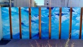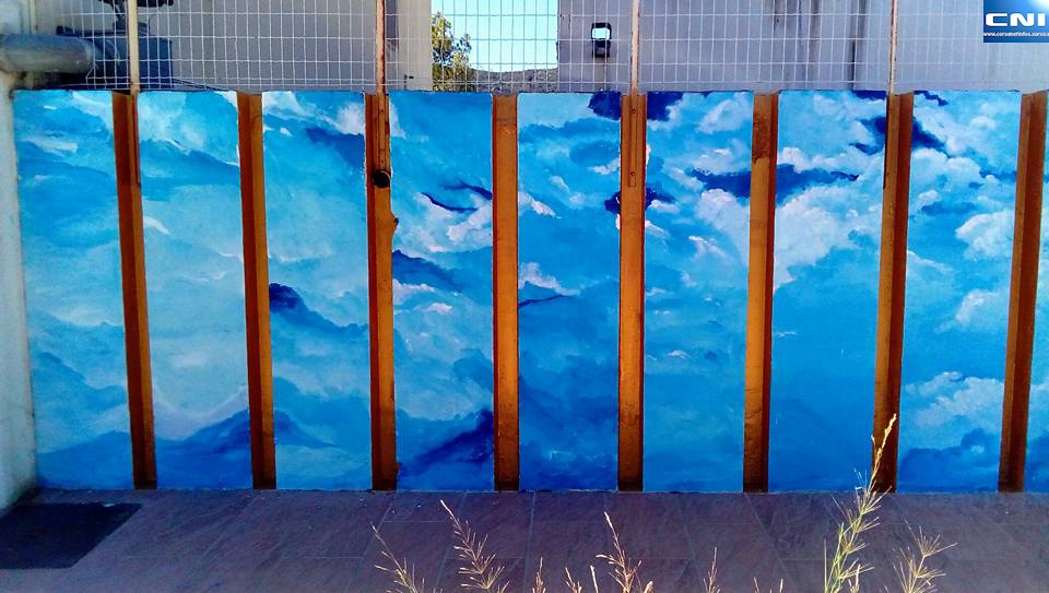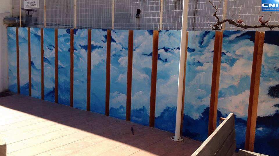 Dans le service d’oncologie, c’est une fresque d’une vingtaine de mètre qui a été réalisée par les deux artistes. Elle est la représentation d’un ciel avec une évolution des nuages. Cette dernière représente la vie, avec ses côtés sombres et des moments clairs. « C’est le cours de notre existence. C’est un message d’espoir ! ».