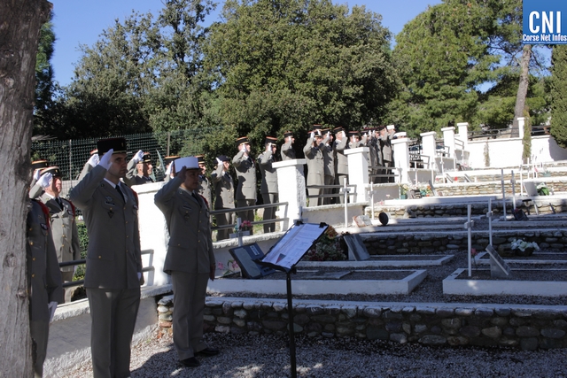 A 12 heures, prenaient place autour du Carré Militaire de Calvi, un détachement d'officiers et sous-officiers du Régiment ainsi qu'une délégation de l'Amicale des anciens du 2e REP, alors qu'un piquet d'honneur présentait les armes.