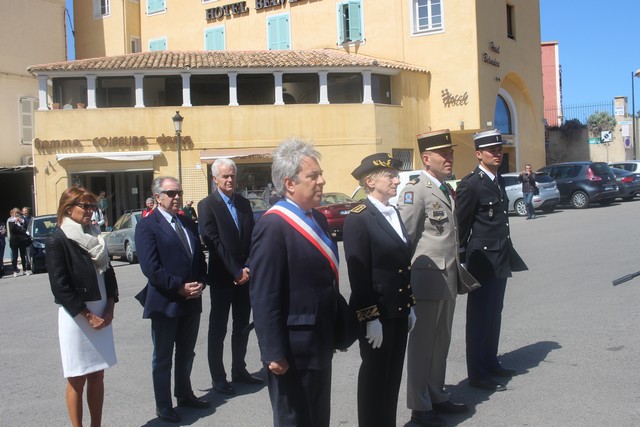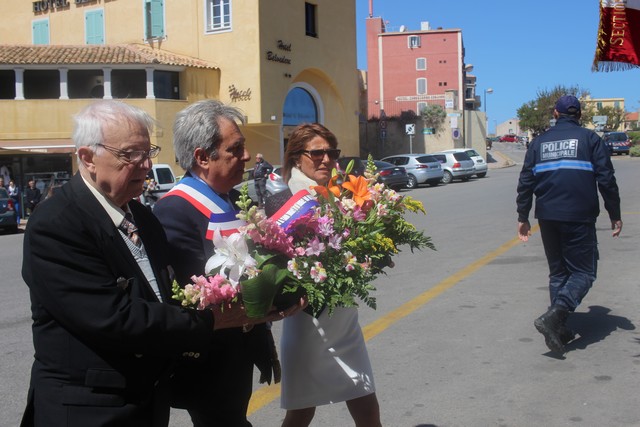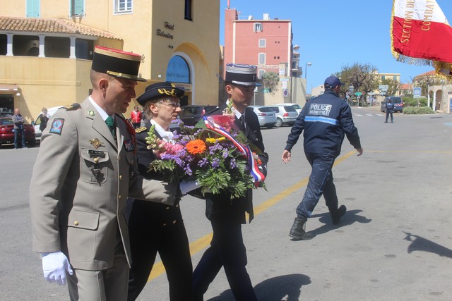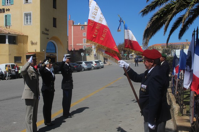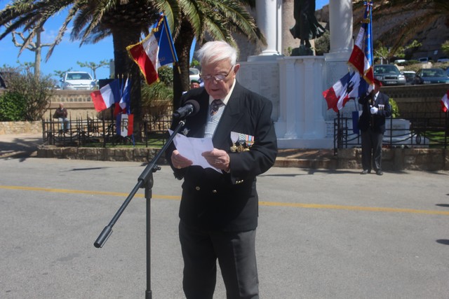 Claude Deceuninck donnait lecture du message des déportés, avant le traditionnel dépôt de gerbes, l'une de la Ville de Calvi par le maire Ange Santini, le président des Anciens combattants Michel Deceuninck et l'adjointe Marie Luciani et la seconde de la sous-préfecture par la représentante de l'Etat Anne Ballereau le chef de corps du 2e REP le colonel Jean-Michel Meunier et le chef de corps de la Cie de Gendarmerie le Cdt Olivier Burles.