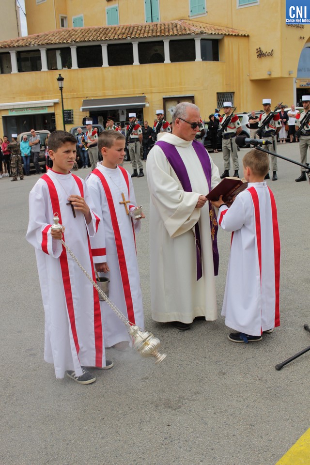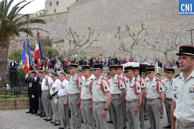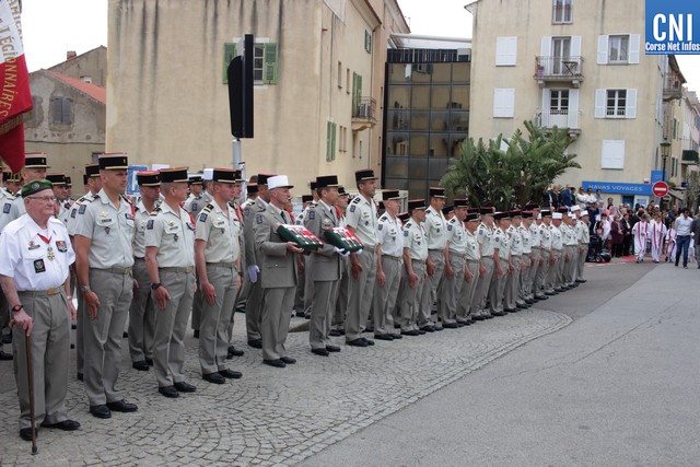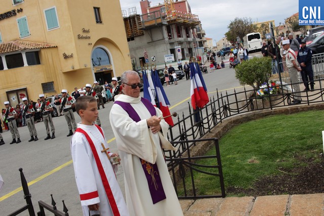 Un premier dépôt de gerbe était effectué par le président des AC Claude Deceuninck, accompagné de Gracieuse Rochault et Bernard Moreau, suivi d'un autre par le Maire de Calvi, Ange Santini, le colonel Christophe de La Chapelle et Frédéric Guglielmi.