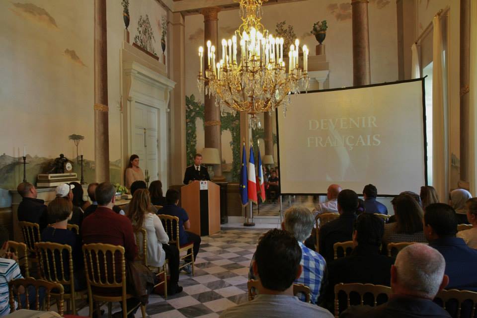 Devenir français n’est pas une simple formalité administrative, c’est un honneur, un engagement, c’est endosser des valeurs et faire siennes celles de la république. Vous allez appartenir à une nation qui se symbolise par une longue histoire, et par une culture particulièrement riche. Une nation libre et démocratique attachée au respect des droits de l’homme. Un héritage historique, culturel, politique et social qui est désormais le vôtre et que vous devez porter avec fierté. Devenir français c’est devenir un citoyen dans la plénitude de ses droits, la France n’est pas fondée sur les appartenances raciales, ou religieuses, elle n’est pas et ne doit pas être composée de communautés diverses ou de ghettos isolés. La France repose sur un principe simple et complexe qui a pour nom : République…