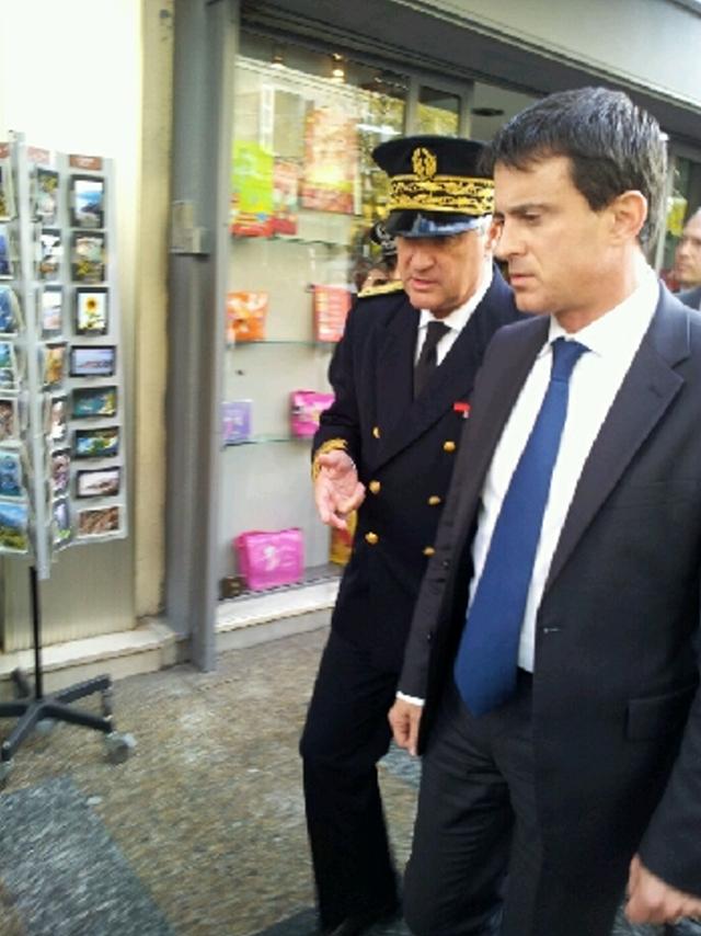 Dès la fin de la réunion avec les élus Manuel Valls s'est rendu sur les lieux de l'assassinat de Jacques Nacer (Photos Marilyne Santi)