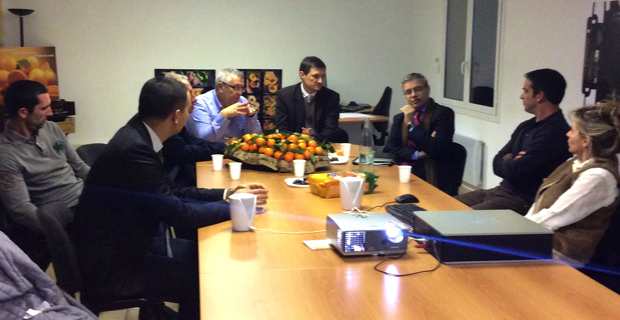Alain Thirion rencontre les acteurs de la filière clémentine au GIE Corsica Comptoir à Moriani.