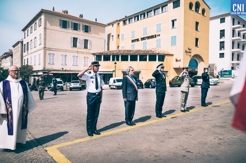 Ni piquet d'honneur en armes du 2e REP, ni délégations d'anciens combattants et militaires, ni public mais seulement quelques autorités présentes pour honorer la mémoire de ceux qui ont sacrifié leur vie pour notre liberté : le maire, Ange Santini, le sous-préfet de l'arrondissement Florent Farge, le chef de corps du 2e REP le colonel Christophe de La Chapelle, le commandant de la Compagnie de Gendarmerie de Calvi, chef de bataillon Paulo De Carvalho, le chef de corps du Centre de Secours et d'incendie de Calvi le capitaine Stéphane Orticoni et l'archiprêtre de Calvi, l'abbé Ange-Michel Valery.
