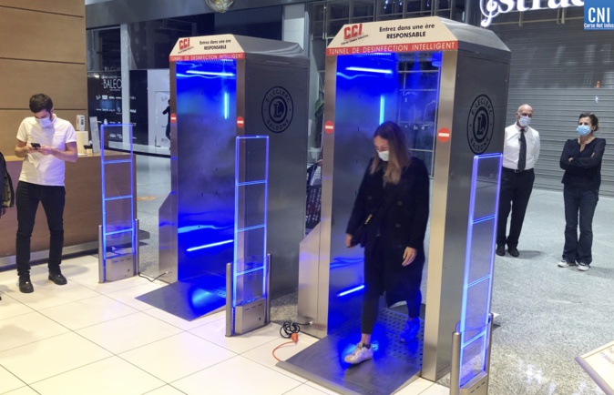 Lundi 9 novembre, les clients du Leclerc de Baleone ont découvert à l’entrée de leur magasin deux nouvelles installations aux allures futuristes : des tunnels de désinfection, sortes de portiques de sécurité, qui permettent en réalité de lutter contre la propagation de la COVID-19.