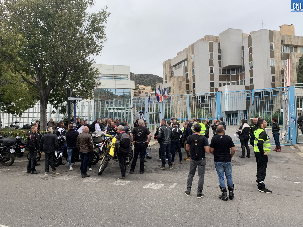 Devant les grilles Yves Lopez-Velasco des « Motardes & Motards di Corsica » a alors exprimé la colère de ses pairs avant de rencontrer la directrice de Cabinet du préfet.
