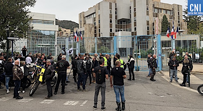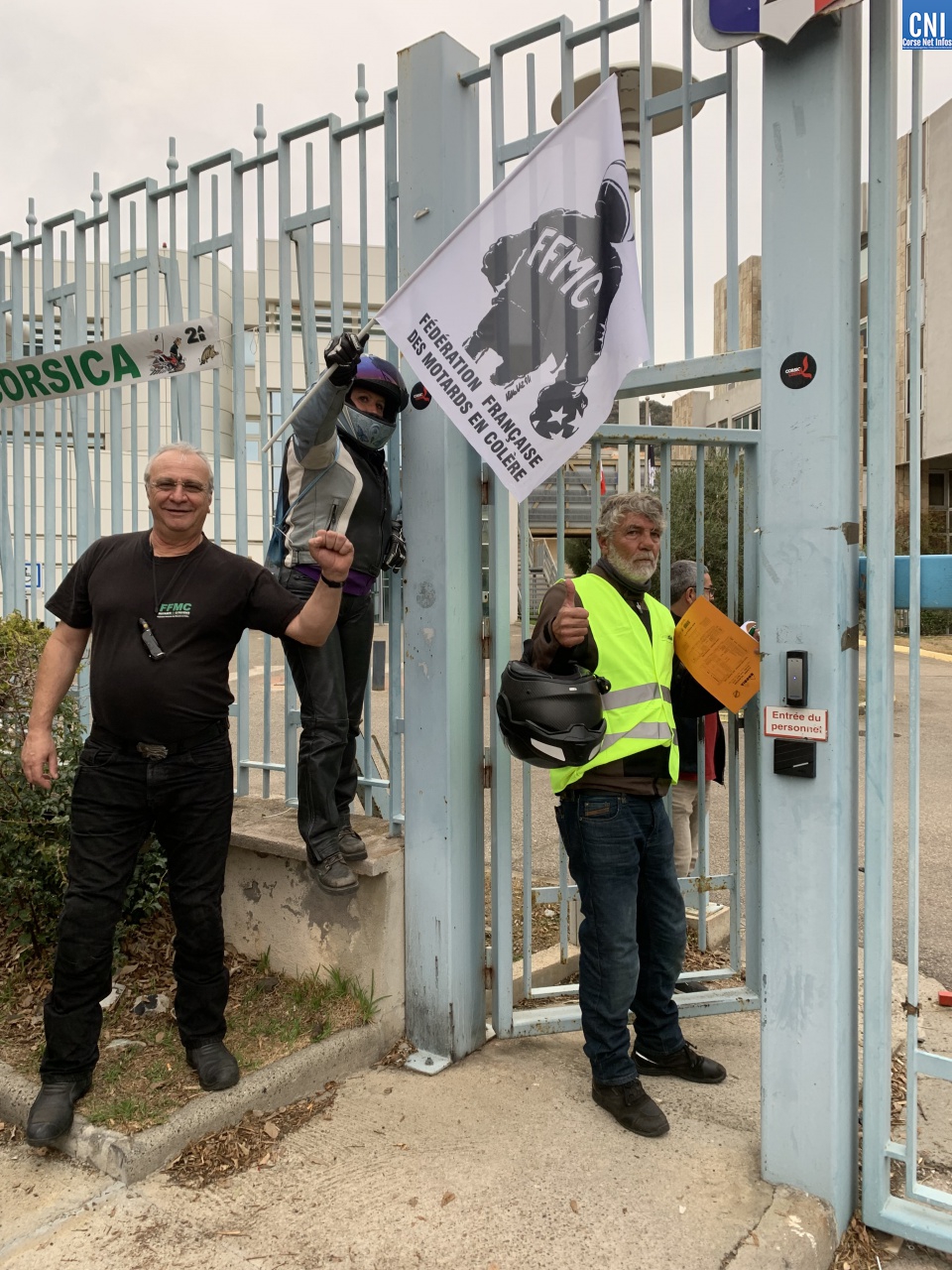 Le mouvement était aussi soutenu par la FFMC, Fédération Française des Motards en Colère di Corsica. Le cortège rassemblant entre 300 et 400 motards est parti du parking de la gare de Furiani et à grands coups de klaxon a sillonné la ville de Bastia avec pour point de chute la préfecture de Haute-Corse.