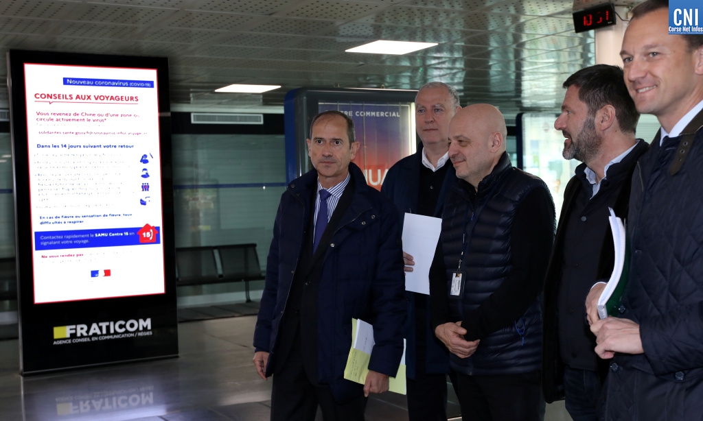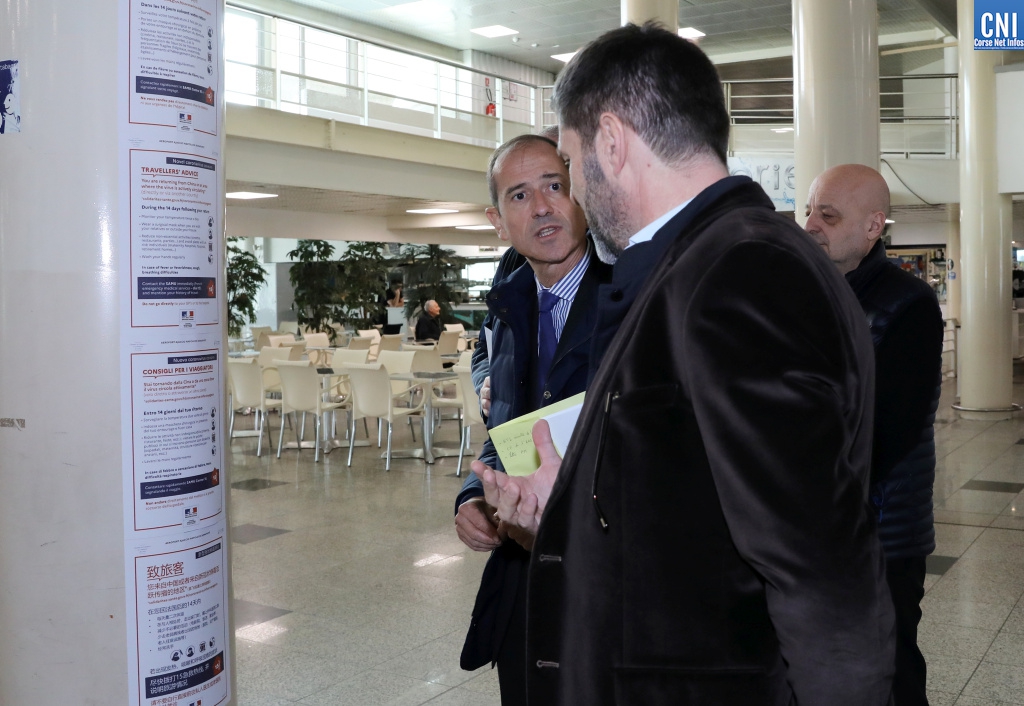 Le préfet de Corse a pu observer ce jeudi que l’aéroport d’Ajaccio et la Chambre de Commerce et d’Industrie ont pris toutes les mesures nécessaires afin d’informer au mieux leurs passagers sur le Coronavirus. Pour Franck Robine « il est important d’assurer une communication forte et puissante car c’est entre 15 000 et 20 000 personnes qui sont attendus ce week-end pour la fin des vacances, transports maritimes et aériens confondus. »