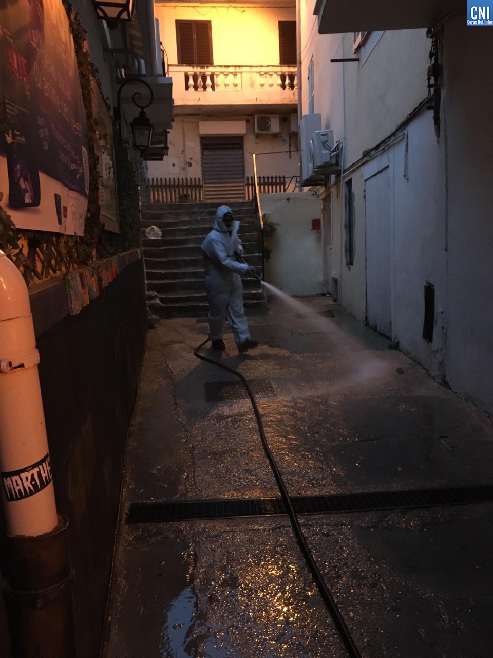 Dans le cadre des opérations de lutte contre l'épidémie du Coronavirus, à l'initiative de la Municipalité de Calvi, les services techniques de la Ville étaient à pied d'oeuvre ce jeudi matin, bien avant le lever du jour pour procéder à la désinfection et au nettoyage des rues et ruelles de la cité.