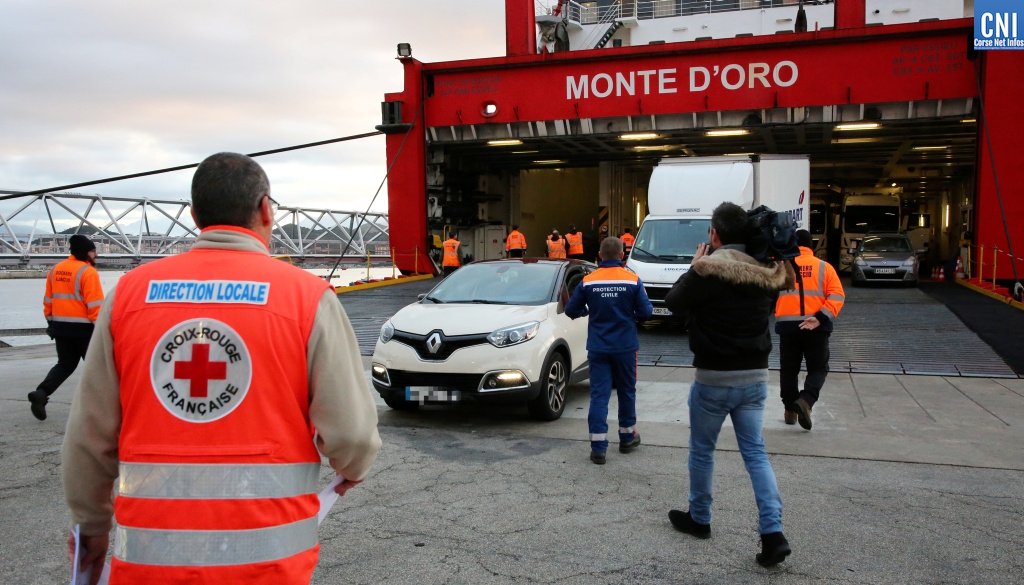 Les passagers débarquant ce 11 mars du Monte d'Oro où les bénévoles de la Croix Rouge les renseignent