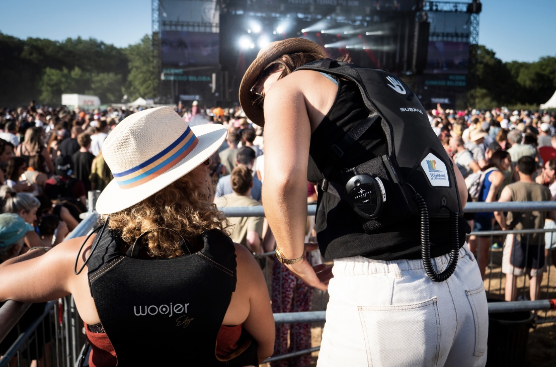 En termes de ressenti, le Subpac est semblable à ce qui se passe lorsqu'on est collé à une enceinte pendant un concert, les risques auditifs en moins. Cette innovation est déjà utilisée depuis plusieurs années dans des festivals sur le continent comme le Hellfest ou les Vieilles charrues, mais c'est la première fois qu'il est testé en Corse. "C'est beaucoup plus inclusif pour les sourds et les malentendants, souligne la secrétaire de l'association Pôle surdité de Corse, Harmonie Sonnette. Ils n'entendront pas les sons, mais ils ressentiront les vibrations au niveau du corps, ce qui leur permettra d'apprécier un concert. La veste est reliée directement à la table de mixage grâce à un système en Bluetooth, ça offre la possibilité de n'avoir quasiment aucune latence avec la musique jouée par l'artiste sur scène, ce qui renforce l'immersion".