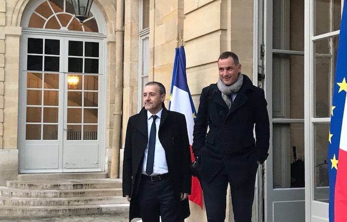 Jean-Guy Talamoni et Gilles Simeoni sur le perron de Matignon avant leur rencontre avec le Premier ministre…