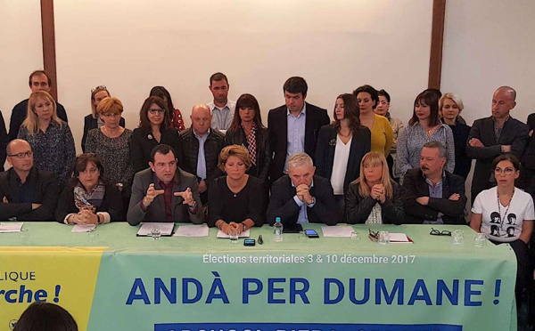 La coalition, formée de la Corse Insoumise, du Parti Communiste et d’a Manca Alternativa, a présenté, samedi matin, place Abbatucci à Ajaccio, en présence de plus d'une centaine de personnes, les 63 noms de sa liste intitulée : « l’Avenir, la Corse en Commun,...