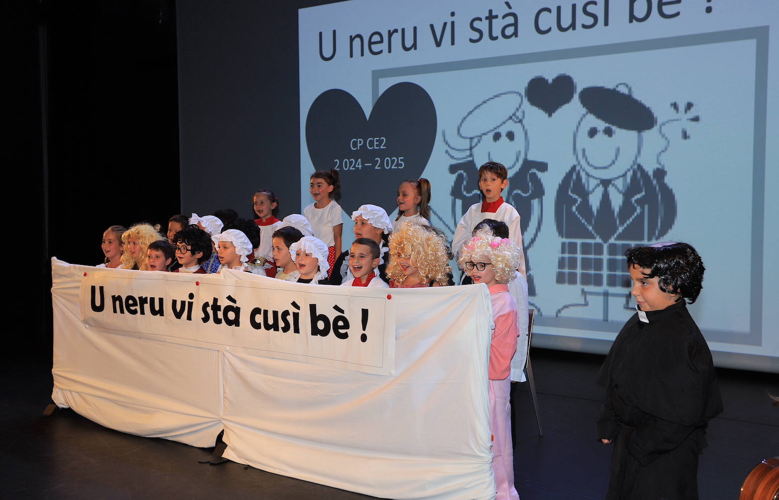 À l’école élémentaire de Sandreschi, c’est le théâtre qui était à l’honneur. Sous la houlette des enseignants Frédérique et Anthony Muracciole, ainsi que César Bernardi, les élèves ont travaillé avec Roselyne Filippini, membre de la troupe U Teatrinu. Ensemble, ils ont présenté deux pièces en langue corse : Colomba et U Neru vi stà cusì bè, adaptées des œuvres de Prosper Mérimée et Jean Marsan. Portées par un jeu d’acteur étonnamment juste, ces pièces ont fait éclater de nombreux rires dans le public.