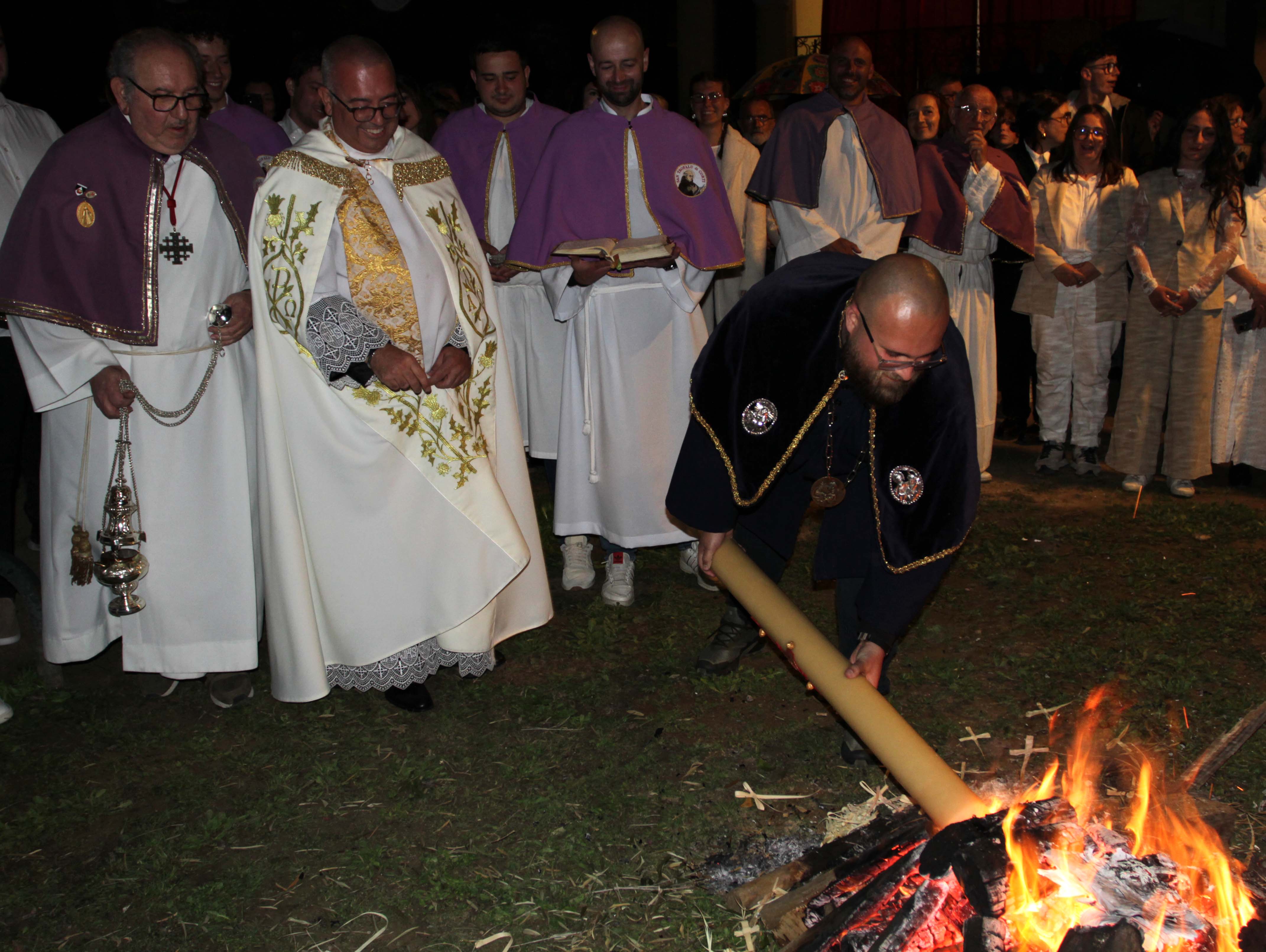 Autour d’un grand feu allumé par les confrères, paroissiens et croyants se sont rassemblés dans un moment de recueillement. L’abbé Bocchecciampe a procédé à la bénédiction du feu, symbole de renouveau, tandis que l’on brûlait les palmes de l’année précédente. C’est dans cette flamme nouvelle que le cierge pascal – appelé à trôner dans le chœur de l’église jusqu’à la Pentecôte – a été allumé.