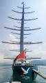 Les voiles forment un ensemble de 2400 m2 de voilures et peuvent se déployer en seulement 6 minutes. Elles sont stockéss dans les mâts en fibre de carbone qui sont autonomes et peuvent pivoter.