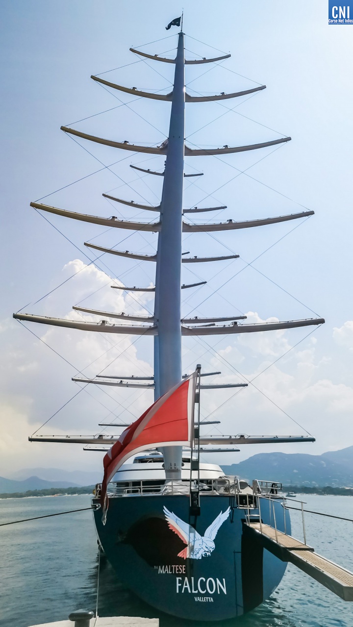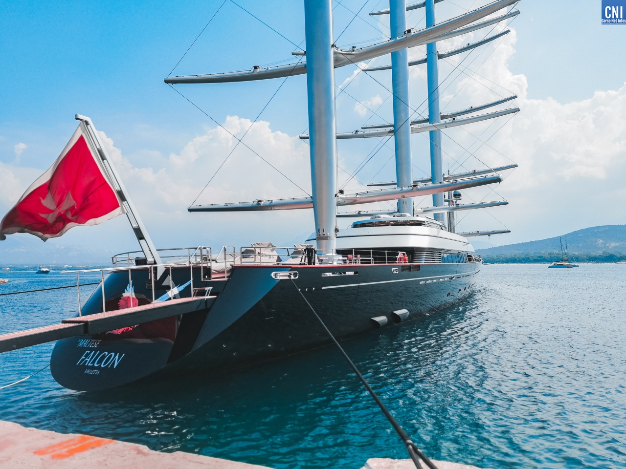 Impressionnant d'élégance et de finesse, le Maltese Falcon, 88 mètres, plus grand voilier privé de luxe au monde, jusqu'en 2018, avant l'arrivée du "Black Pearl", 106,7 mètres, a fait une entrée très remarquée ce dimanche matin dans la baie de Calvi, avant de venir s'amarrer en long, au quai de l'ancien port de commerce, bénéficiant pour la circonstance de toute l'aide des employés de la capitainerie du port de plaisance et de son Capitaine Philippe Gabrielli.