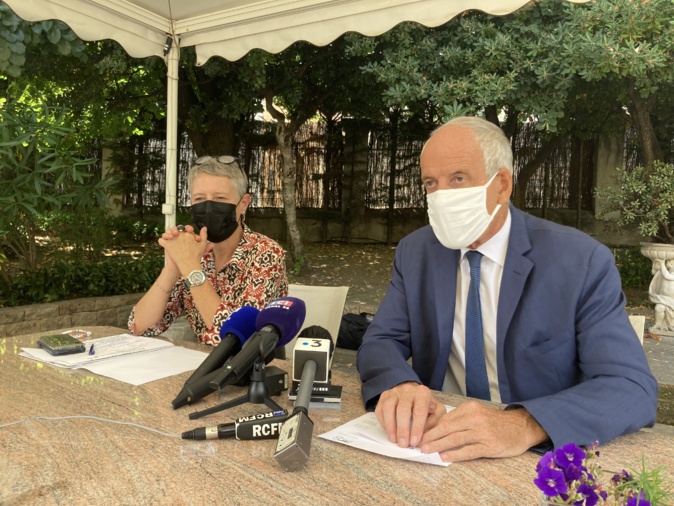 La directrice de l'ARS Marie-Hélène Lecenne et le préfet Pascal Lelarge ont tenu une conférence de presse à Ajaccio ce mercredi 4 août. Photo : Julia Sereni
