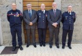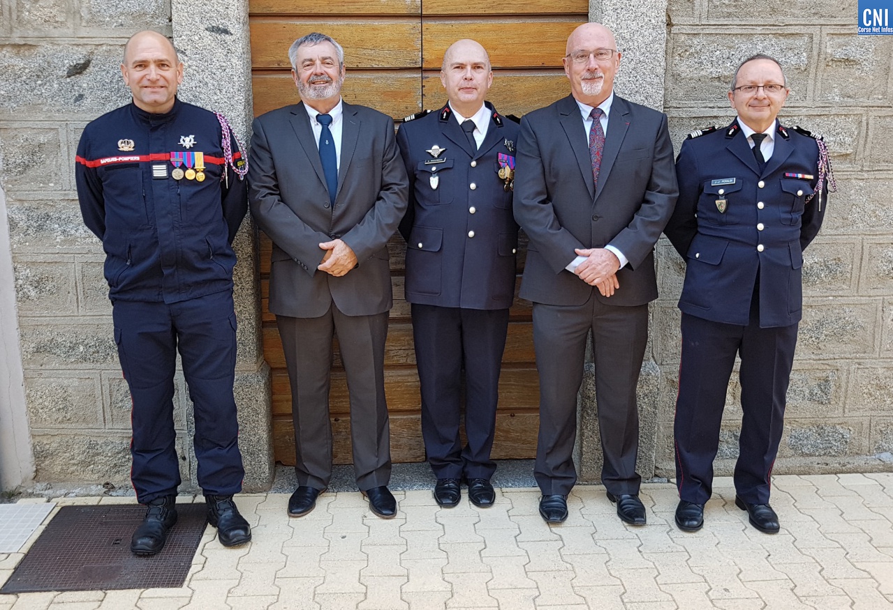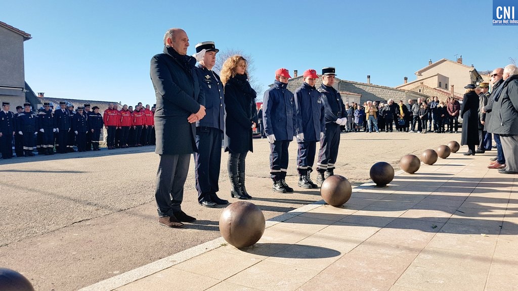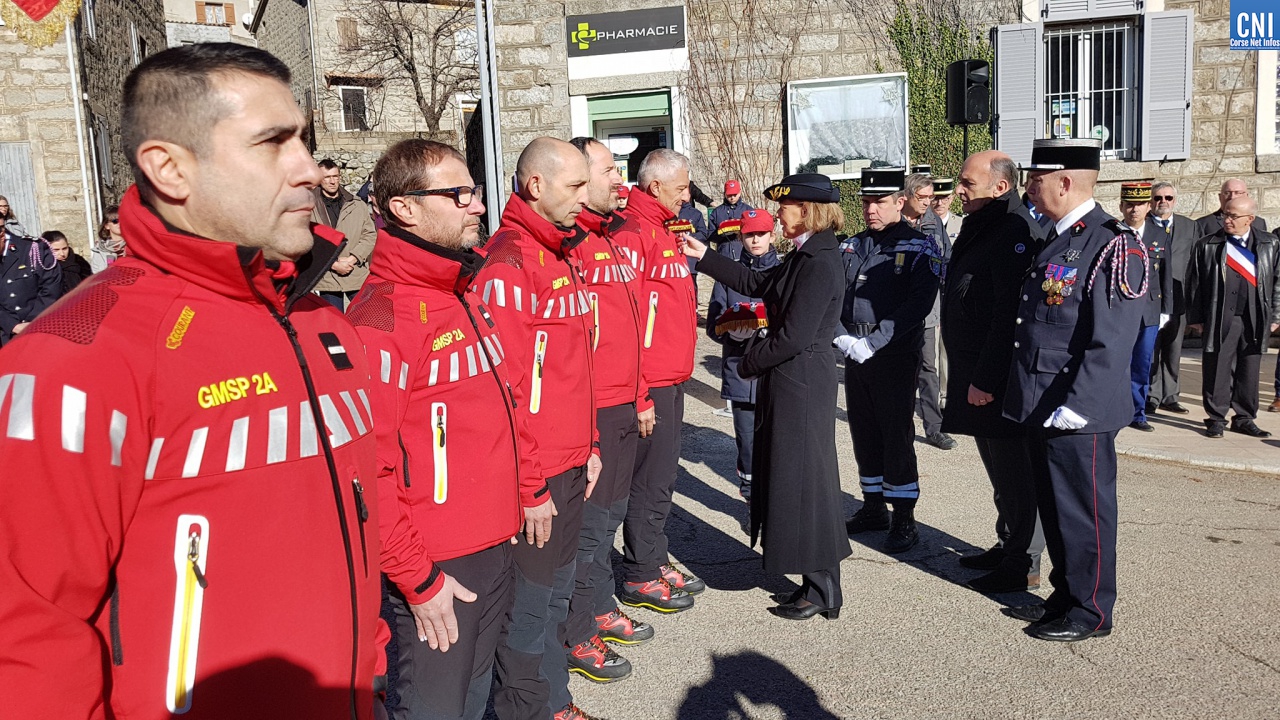 Une cérémonie en présence de Guillaume Lericolais, directeur de Cabinet de la préfète, le général de gendarmerie Jacques Plays, Véronique Arrighi, Paul Miniconi et François Bernardi, conseillers à l'assemblée de Corse, Jean-Jacques Ferrara, député de Corse du Sud, le colonel Jean-Jacques Peraldi, directeur adjoint du SIS 2B, les commandants Thierry Nutti et Jean-Marc Giacomini, présidents des UDSP et le colonel Laurent Couasné, chef de corps de l'UISC5 de Corte.