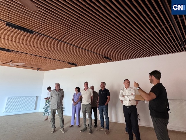 Au cœur de la visite, le futur centre culturel, en voie d’achèvement. Son architecte, Julien Casalta, en a dévoilé la philosophie : « Culturel, patrimonial et paysager. On est vraiment parti du dernier terme, “paysager”, pour concevoir ce projet. C’était une évidence. Il a fallu dézoomer de la parcelle, observer le paysage balanin, un paysage modelé depuis des siècles par l’homme. Et comme nos anciens, on a voulu faire avec ce qu’on trouvait sur place, la terre et les pierres ».