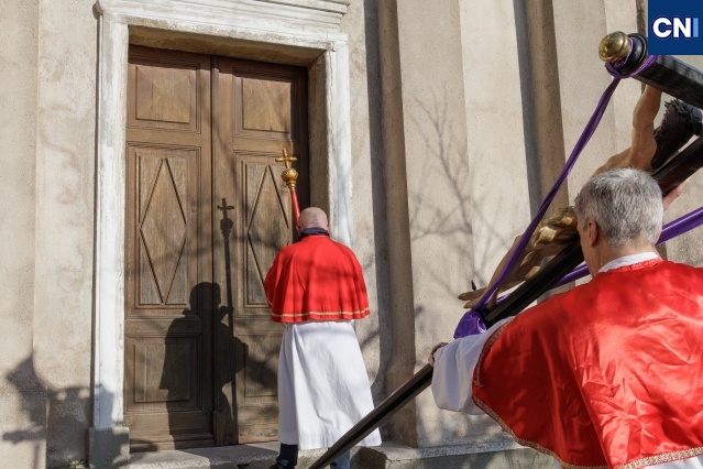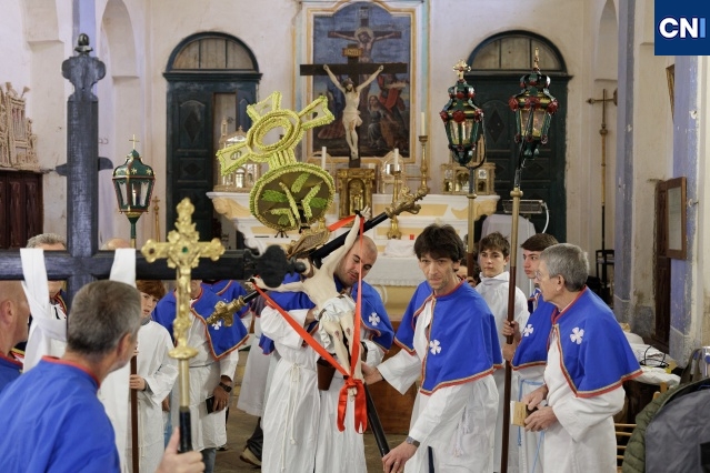 Au bout du parcours, il y a l’église. Et juste en y rentrant , il y a ce moment que tous attendent, ou redoutent : les trescinelle.
