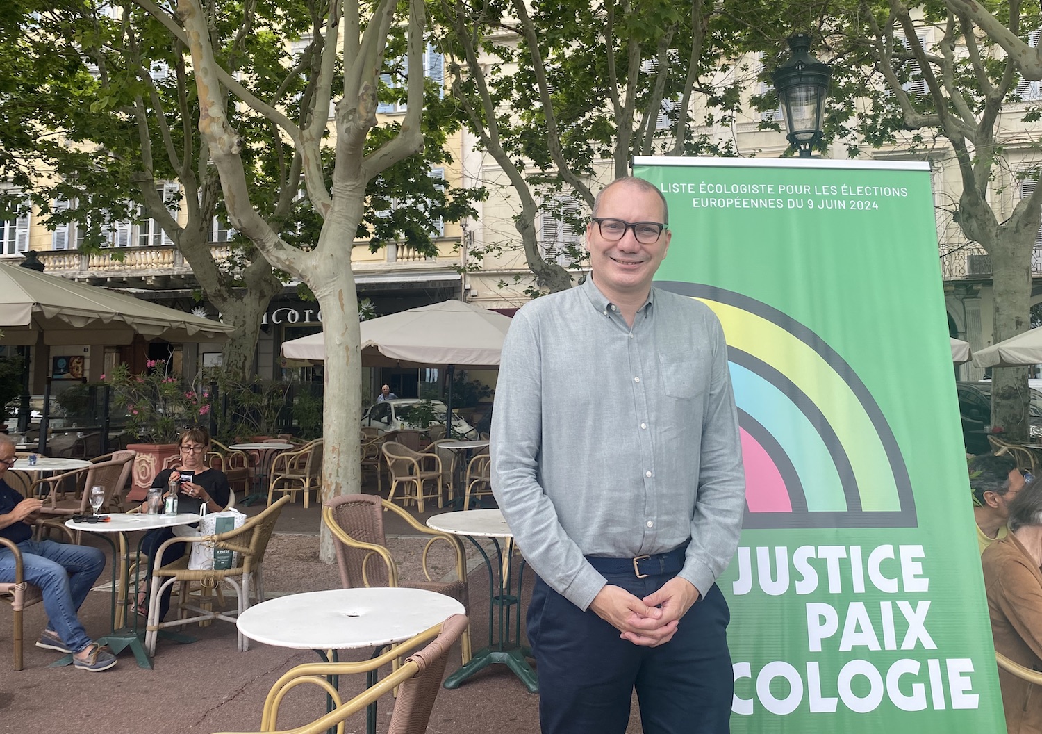 David Cormand, en deuxième position sur la liste Europe Écologie Les Verts derrière la vice-présidente du groupe des Verts/Alliance Libre Européenne Marie Toussaint, s’est rendu à Bastia pour une conférence de presse, jeudi 30 mai 2024.