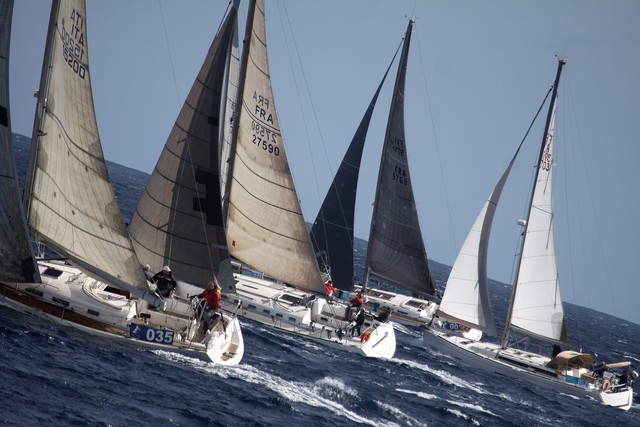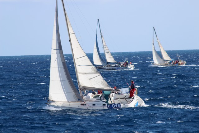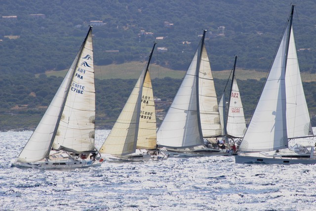 Les 93 rescapés, sur 150 au départ, de la 51e Croisière Bleue ont largué les amarres samedi à 9 heures du port de plaisance "Xavier-Colonna" pour rejoindre la baie de Calvi et hisser les voiles. A 9h30, les premiers groupes par catégories passaient la bouée de départ et prenaient le large en direction de la Pointe de la Revellata.