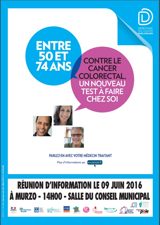 Une information sera également donnée sur le nouveau test immunologique du dépistage du cancer colorectal. Depuis le mois de janvier, c'est donc à Murzo que se déroulera cette 6ème réunion d'information qui s'adresse également à tous les acteurs de santé.