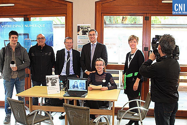 Jérôme Seguy, sous-préfet de Calvi était présent aux côtés de Michel Castelli, directeur régional adjoint de Pôle Emploi, Christelle Savelli, directrice Pôle Emploi Ile-Rousse-Balagne, Pierre-Olivier Bonnot, chargé de mission à la Direction Régionale des Entreprises, de la Concurrence, de la cponsommation et de l'Empoii (DIRECCTE), Frédéric Guglielmi, secrétaire général de la sous-préfecture de Calv...