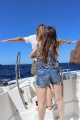 8h30 du matin, la chaleur est encore supportable. Une dizaine de jeunes filles du continent, dont une enterrant sa vie de jeune fille, embarquent à bord du Santa Régina où elles sont accueillies par le pilote Gaetan et le boss de "Tramare e Monti", Fabien Rocca Serra direction la pointe de la Revellata et la réserve de Scandola avec un passage obligé devant la citadelle de Calvi.