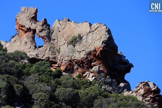En haut d'un piton rocheux, un nid de balbuzard pêcheur, devenu un emblème de la protection de la faune, mais, toujours dans le respect de l'environnement et de celui de la charte de bonne conduite signée par les bateliers avec le Parc Régional de Corse, l'embarcation s'éloigne pour ne pas gêner le couple de balbuzards et leurs bébés.