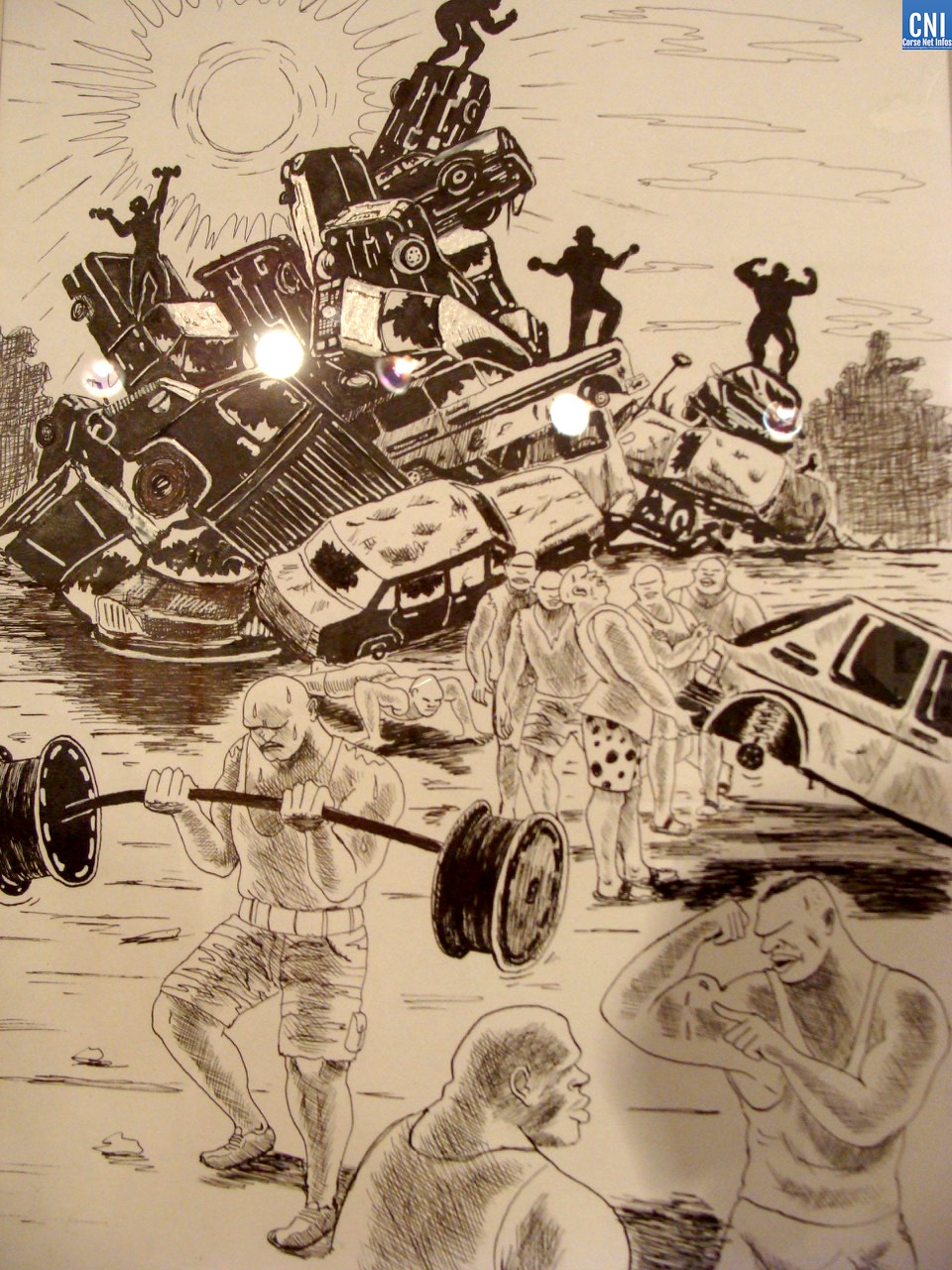 Le personnage est discret. Plutôt réservé même. Son univers si particulier l’a amené à être exposé au rez-de-chaussée du centre culturel. « Un véritable coup de cœur » pour Juana Macari, directrice d’Una Volta. L’exposition présente ses œuvres dont des planches originales mais aussi d’étranges boîtes magiques interactives faisant vivre et animer les personnages fantastiques qui peuplent son univers. Un univers qu’il a développé en choisissant très tôt de travailler « plusieurs techniques dont l’estampe, les pochoirs, la gravure sur bois ou encore l’eau forte. » Des procédés qui donnent forcément une couleur particulière à son travail. « Parce qu’en gravure, par exemple, on pousse son dessin jusqu’au bout. On travaille sans voir le résultat. Sauf à la fin. C’est alors réussi ou loupé. Il faut parfois tout recommencer. »