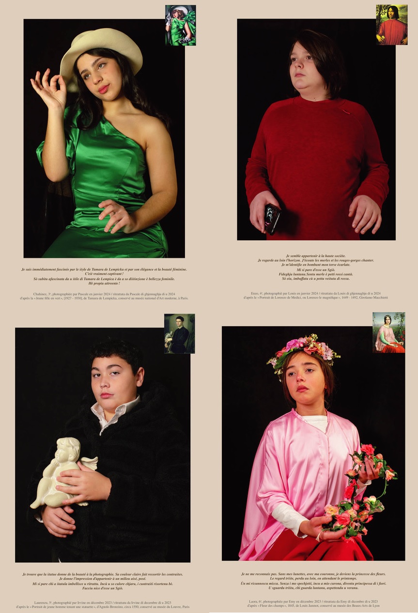 Valérie Rouyer souligne l'importance de ce projet pédagogique « Ce projet pédagogique s’inscrit dans une volonté d’accompagner l’élève à regarder et à interroger la photographie à travers une approche picturale ». Les participants ont bénéficié d'une initiation au cadrage et à la composition, nourrie par l'étude de l'histoire de la photographie classique et contemporaine à travers les œuvres d'artistes renommés tels qu'Erwin Blumenfeld, Jenny Boot, Désirée Dolron et Catherine Balet. Inspirés par des recherches iconographiques couvrant des peintures de la Renaissance jusqu'au 19e siècle, les élèves ont sélectionné un portrait pictural qu'ils ont ensuite réinterprété en photographie.