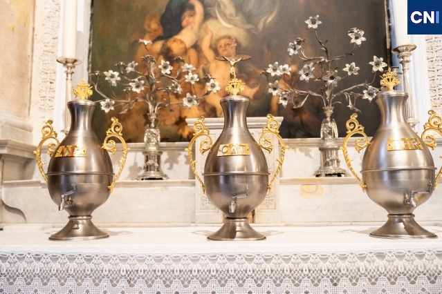 La célébration a également été marquée par la bénédiction des huiles saintes : l’huile des catéchumènes, l’huile des malades, ainsi que le saint chrême. Ces huiles sont utilisées tout au long de l’année pour l’administration de plusieurs sacrements, notamment les baptêmes, les confirmations, les ordinations ou encore les dédicaces d’église.