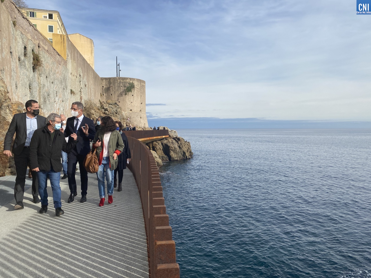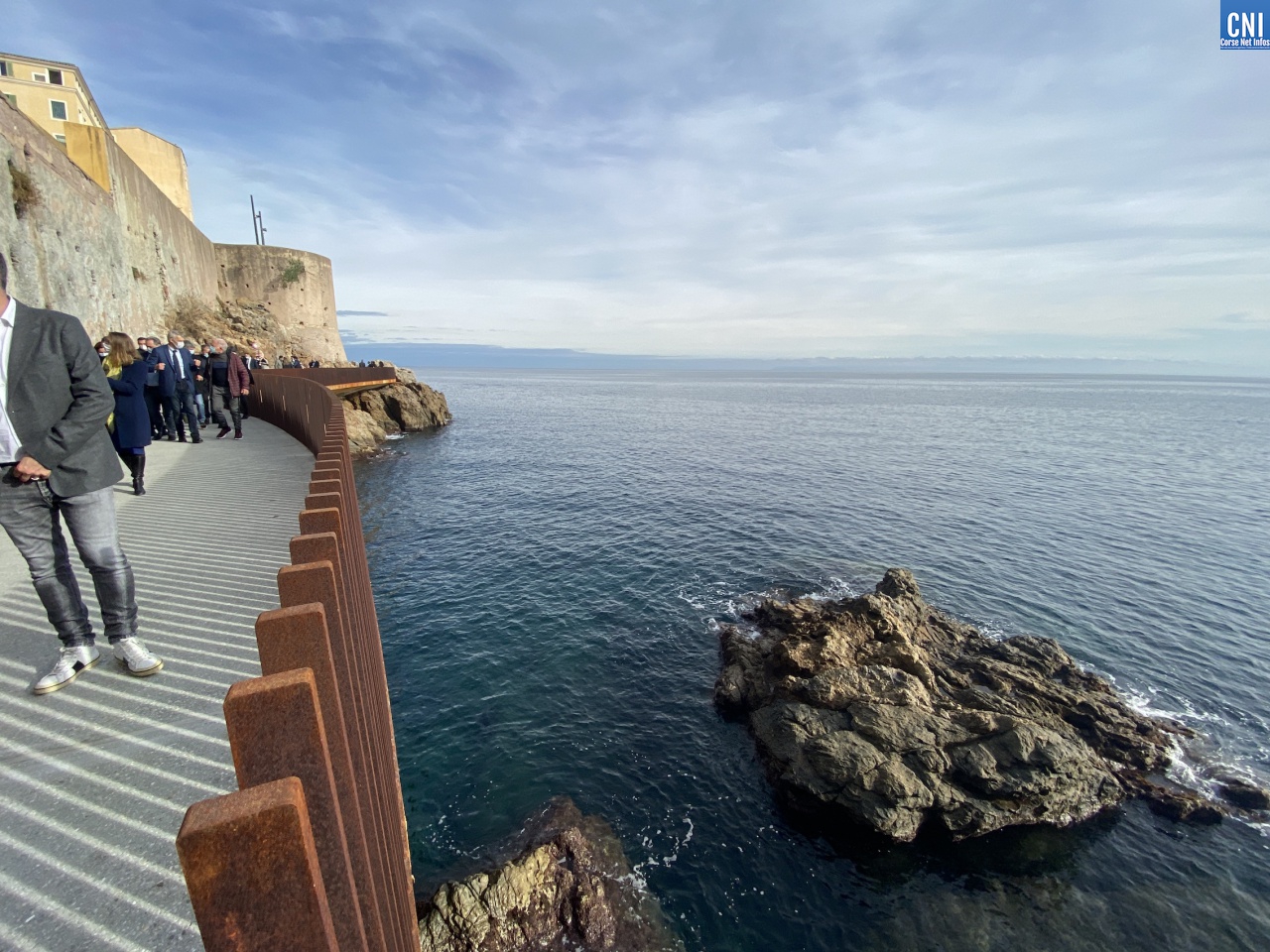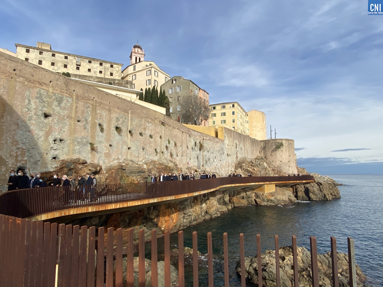 Ce lundi 23 décembre, c'est sous un très beau soleil que le ruban rouge de l'Aldilonda a été coupé par le maire de la ville, Pierre Savelli entouré de Gilles Simeoni, Jean Guy Talamoni, Michel Castellani, les maîtres d'oeuvre du projet ainsi que les services de la préfecture. Après un an et demi d'importants travaux d'ingénierie entrepris par le mandataire autrichien Dietmar Feichtinger Architectes et le cabinet d'architecture insulaire Buzzo-Spinelli, les Bastiais pourront désormais venir se balader dans ce sublime spot de 450 mètres suspendu au dessus de l'eau et accroché aux remparts de la citadelle.