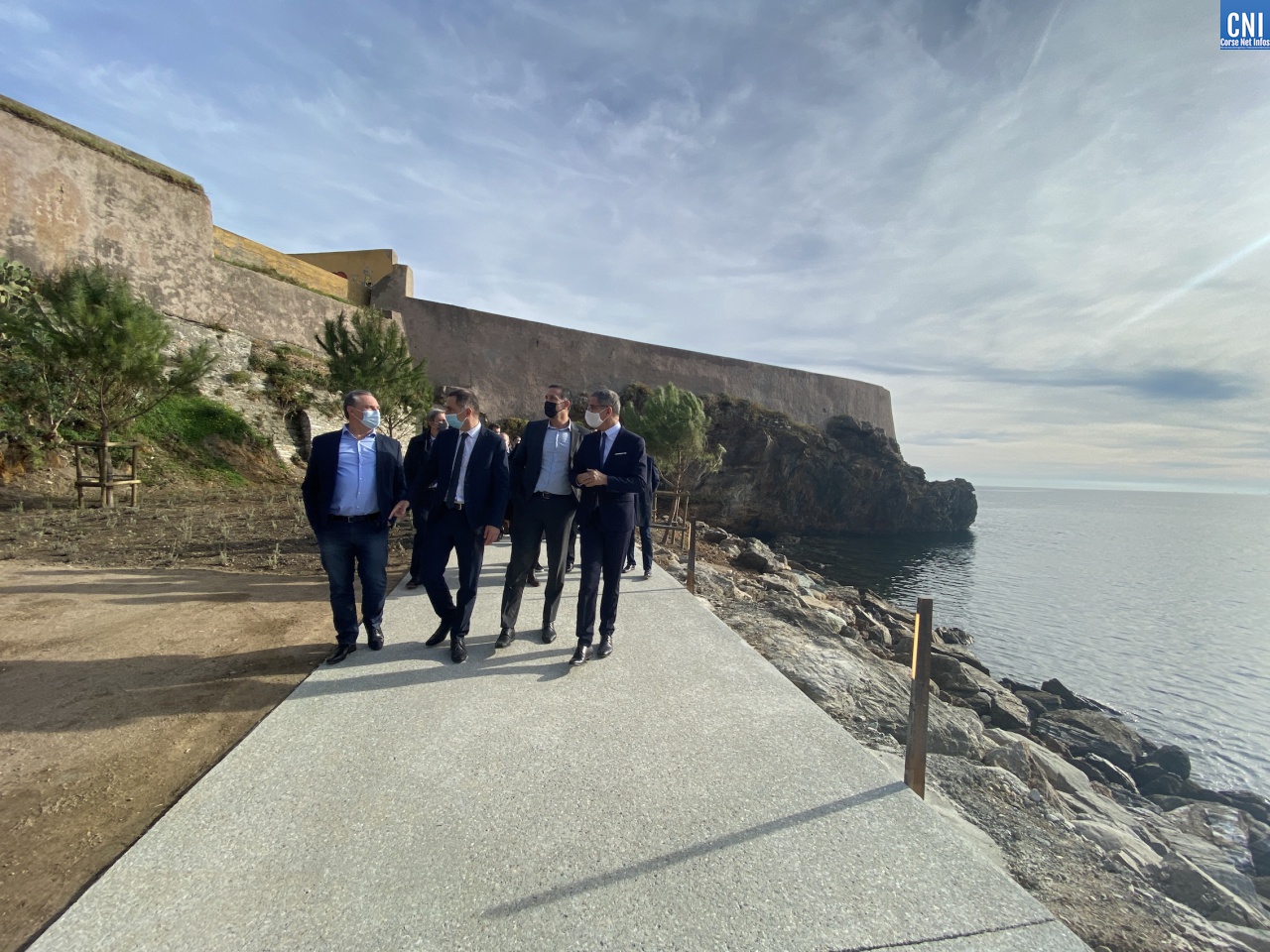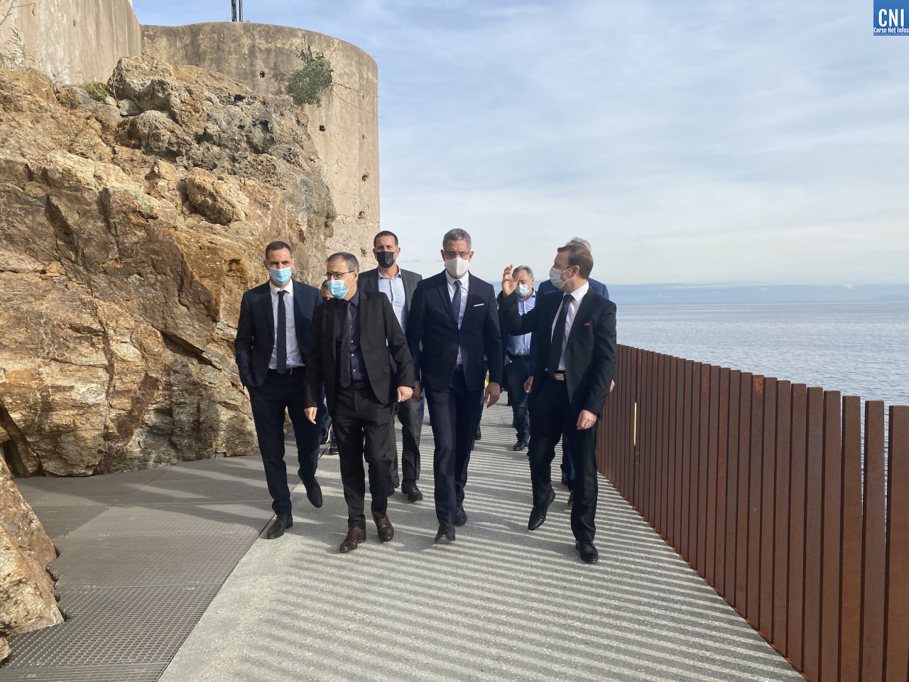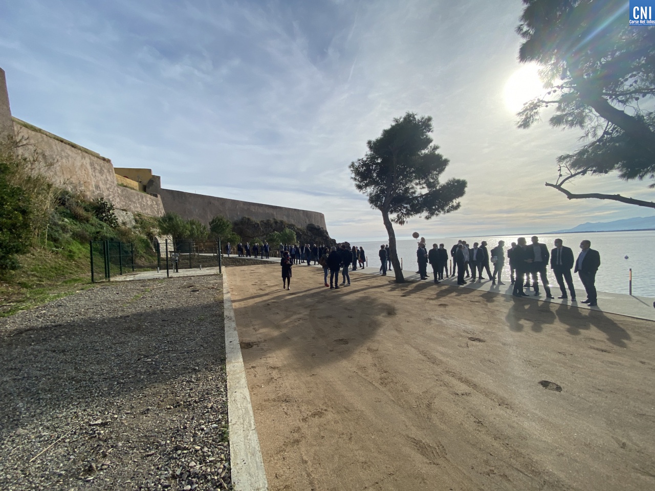 Ce lundi 23 décembre, c'est sous un très beau soleil que le ruban rouge de l'Aldilonda a été coupé par le maire de la ville, Pierre Savelli entouré de Gilles Simeoni, Jean Guy Talamoni, Michel Castellani, les maîtres d'oeuvre du projet ainsi que les services de la préfecture. Après un an et demi d'importants travaux d'ingénierie entrepris par le mandataire autrichien Dietmar Feichtinger Architectes et le cabinet d'architecture insulaire Buzzo-Spinelli, les Bastiais pourront désormais venir se balader dans ce sublime spot de 450 mètres suspendu au dessus de l'eau et accroché aux remparts de la citadelle.