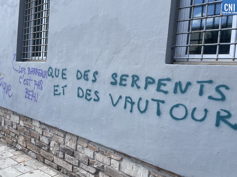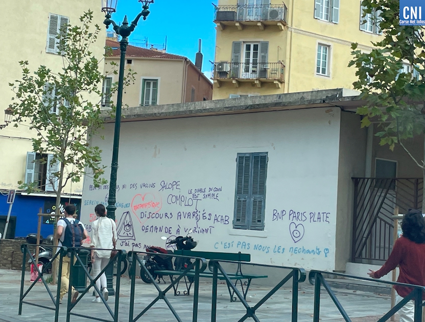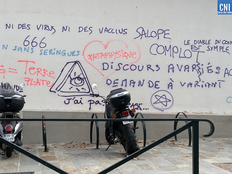 "Serein sans seringue", "Peur ni des virus, ni des vaccin", "Ce n'est pas nous les méchants", 666 love"..., de multiples messages sans liens apparent entre eux ont fleuri sur la quasi-totalité de la surface externe des collèges Giraud et Simon-Vinciguerra.