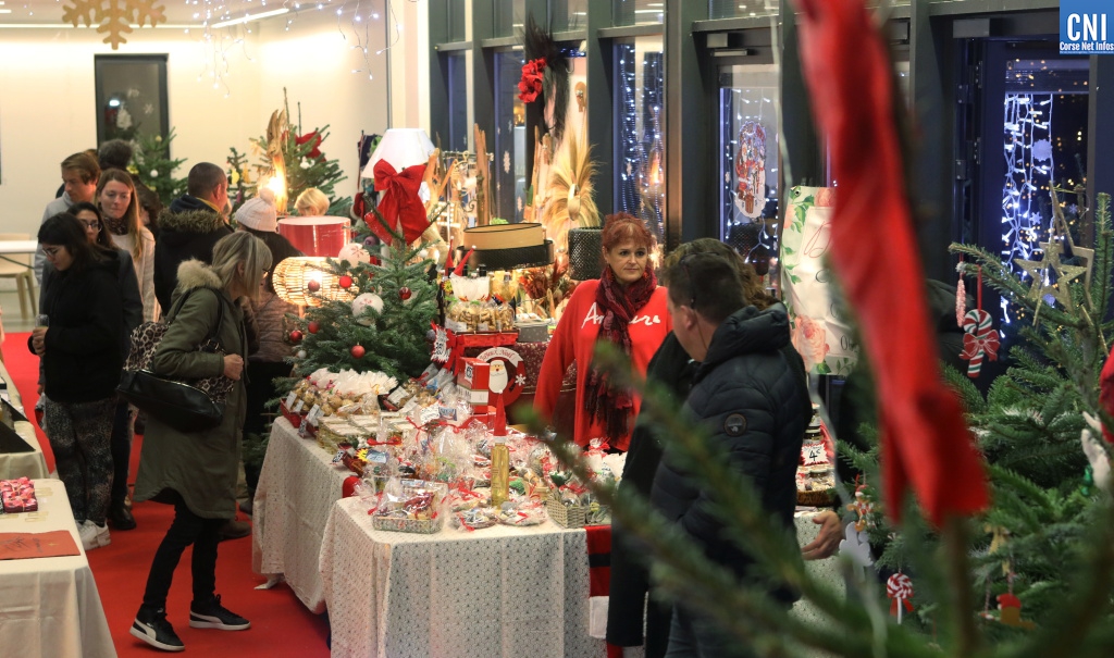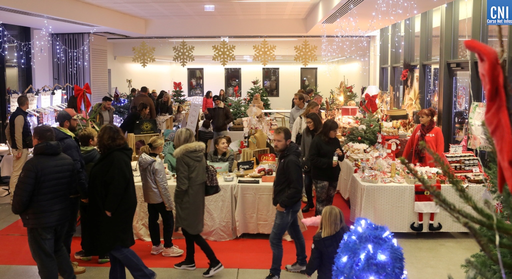 Dès les premiers pas au milieu des sapins et autres sucres d'orge artificiels, senteurs de vin chaud et de sucreries se mêlent à la fraîcheur automnale. Une vingtaine de chalets ont investi la place, au cœur du pôle d'activités de la commune. Juste en face, le centre culturel de Porticcio aussi s'est habillé de rideaux de lumière blanche pour l'occasion. Pour y entrer, il faut passer devant les jeunes téméraires profitant du trampoline-élastiques, habillé de cordons lumineux qui changent de couleur.