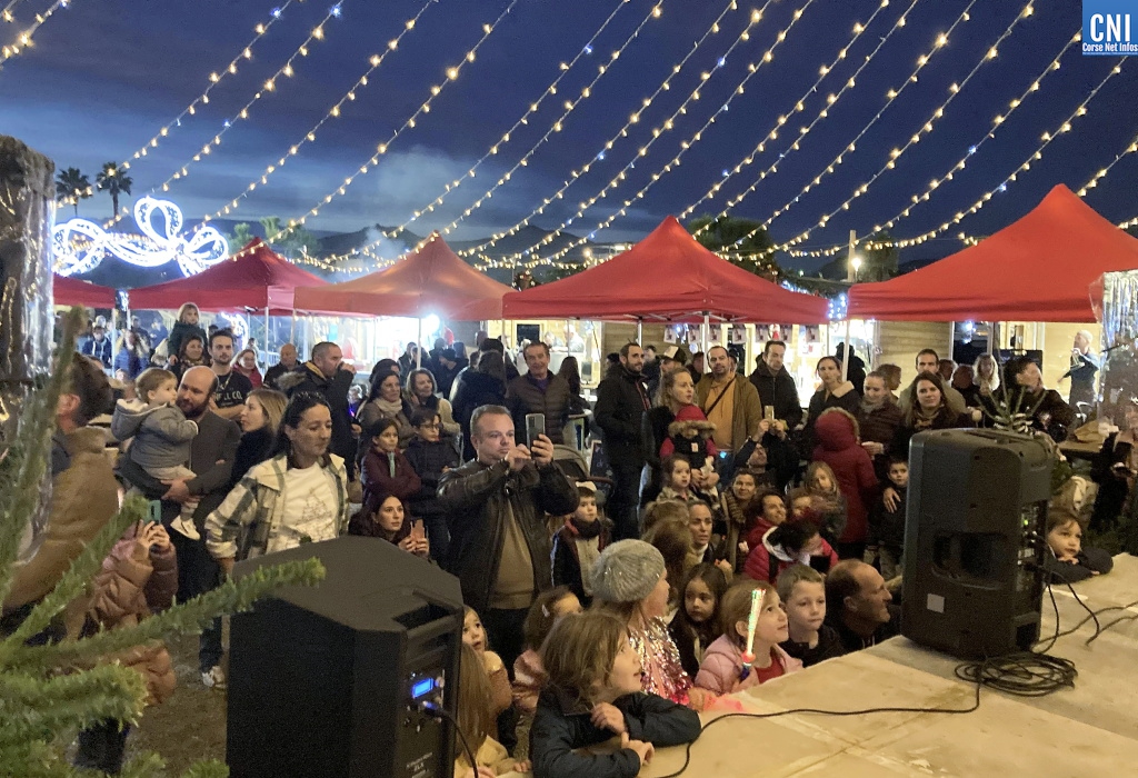 "Libérée, délivrée"... Vous connaissez la chanson. Alors en s'approchant de la place Saint-Laurent de Porticcio, impossible de ne pas reconnaître la mélodie de la Reine des neiges. Sur une scène en plein milieu du marché de Noël, la chanteuse interprète son plus célèbre titre sous les lumières du ciel étoilé qui surplombe la place. Interpellée par la horde d'enfants lui réclamant une photo à peine son show terminé, la Reine la plus populaire auprès des jeunes vole même la vedette au Père Noël.