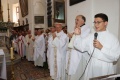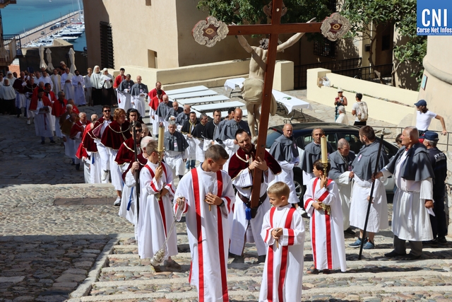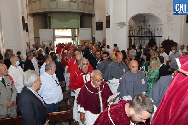 A 10h30 c'est de l'Oratoire Saint-Antoine qu'une longue procession composée des confrères de Calvi et de Balagne, Mgr Olivier de Germay, Évêque de Corse et de nombreux membres de l'évêché de Corse, l'abbé Ange-Michel Valery, archiprêtre de Calvi-Balagne et anciens prêtres de la paroisse de Calvi, se dirigeait en la cathédrale Saint Jean-Baptiste de la Haute-Ville beaucoup trop petite pour accueillir la foule de fidèles qui se pressait.